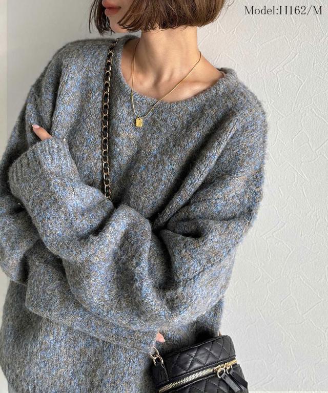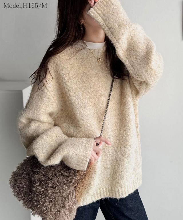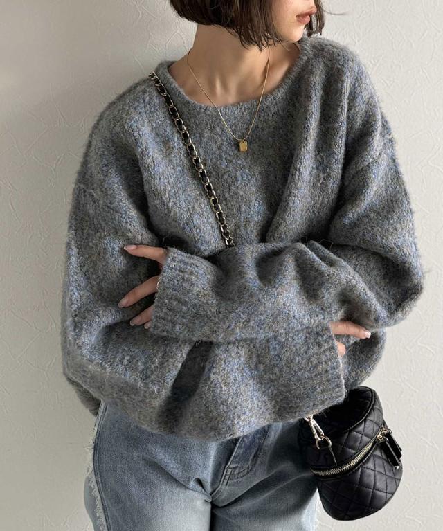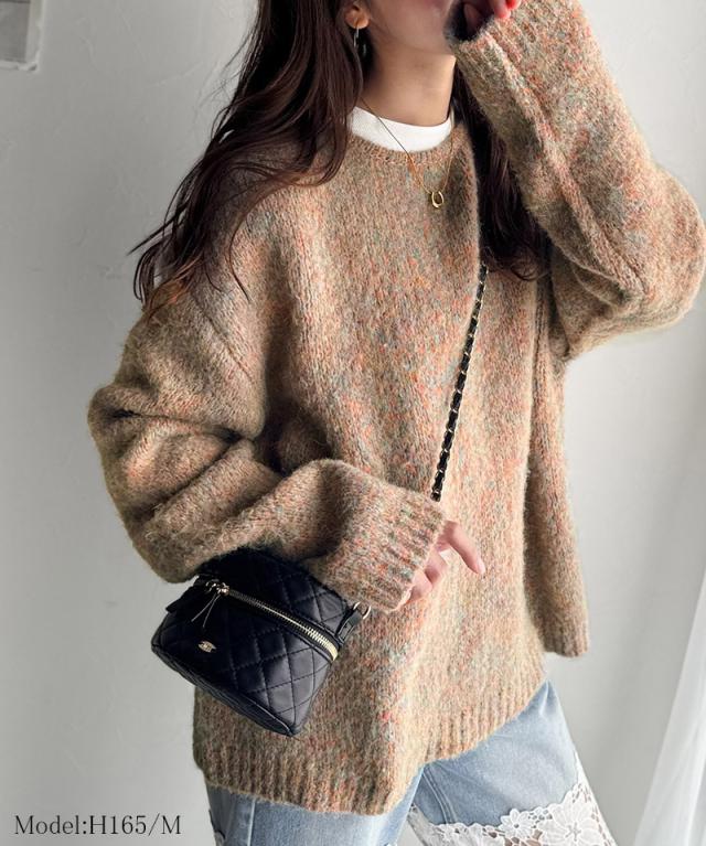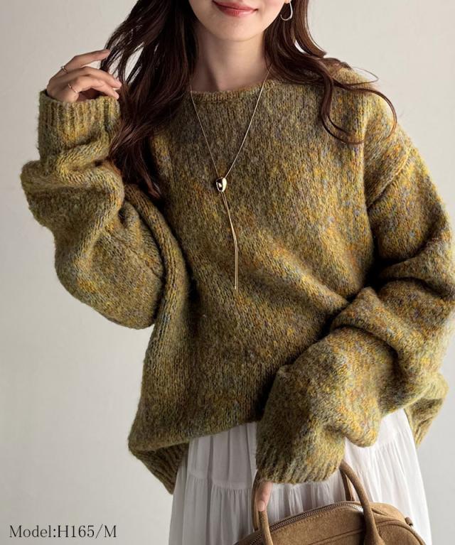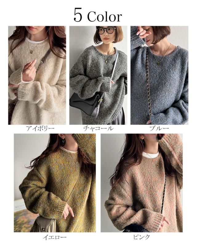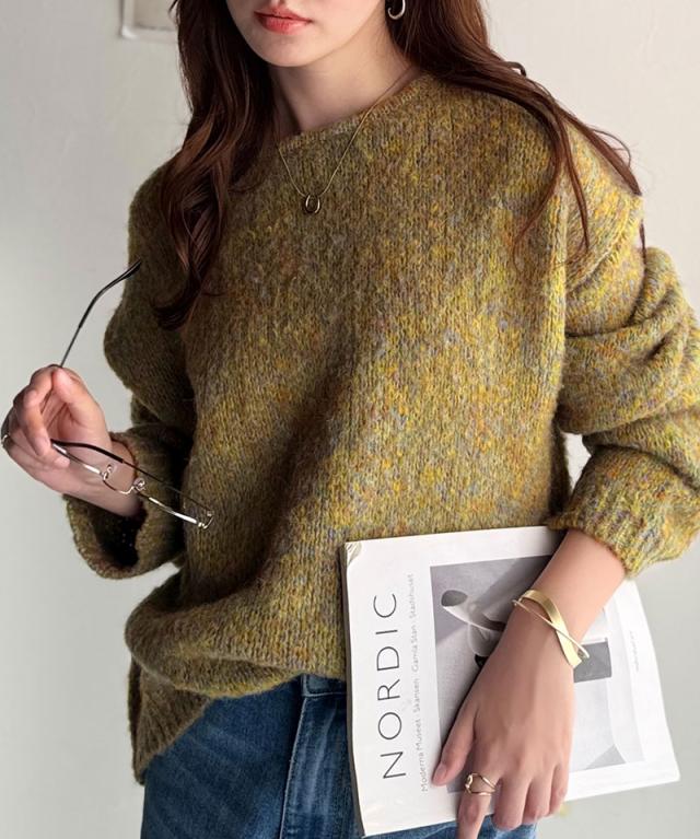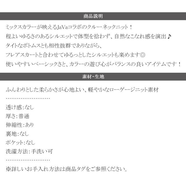 クラシカルエルフ秋新作 java ジャバコラボ ニット レディース きれいめ トップス クルーネック ミックスカラー ふわふわ ベーシック 上品 抜け感 ふんわり感 華奢見え ゆったりシルエット 体型カバー ローゲージニット 大きいサイズ 2025aw jv1020308
