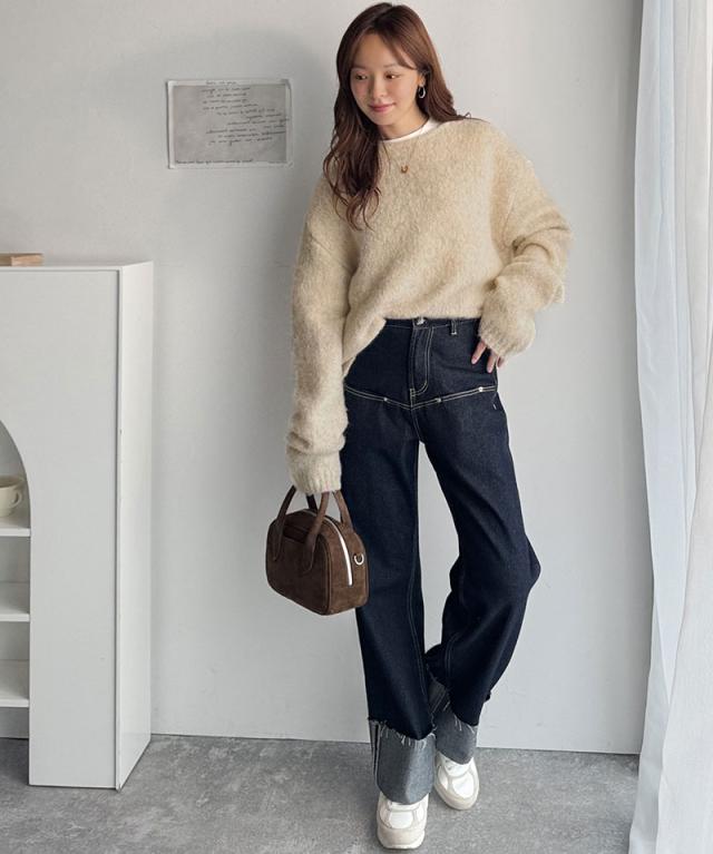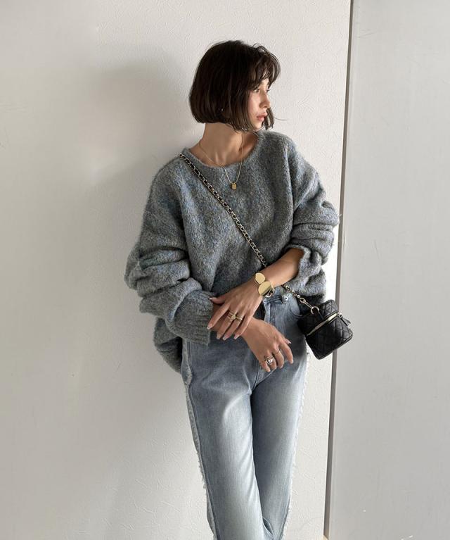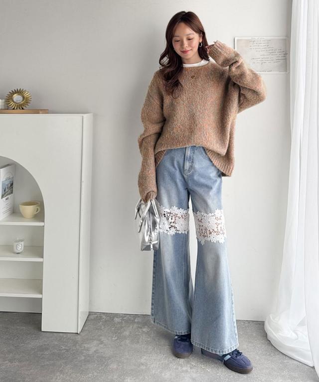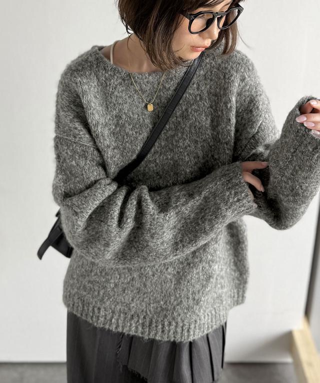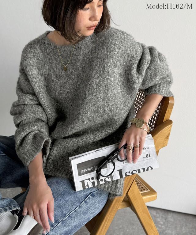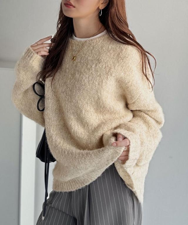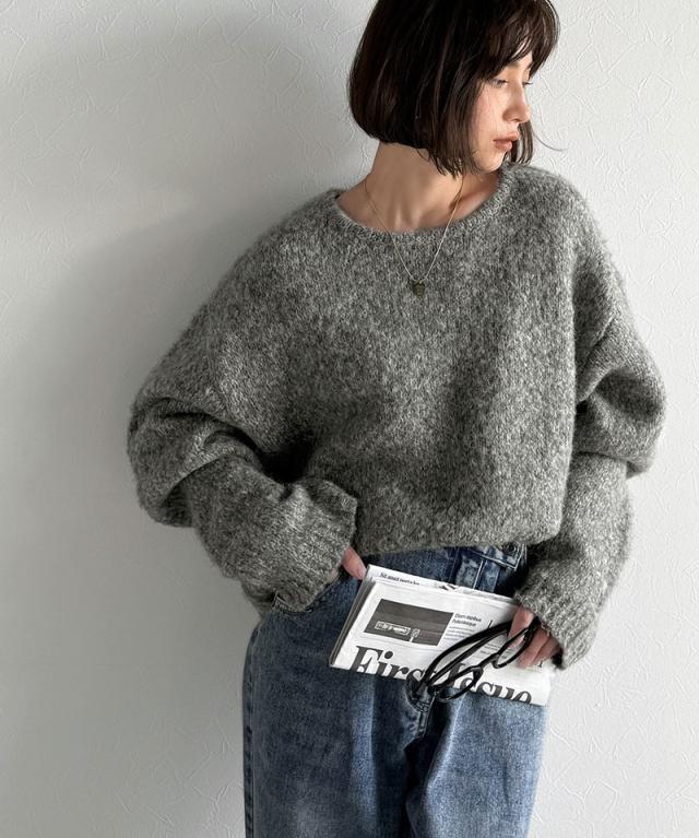 クラシカルエルフ秋新作 java ジャバコラボ ニット レディース きれいめ トップス クルーネック ミックスカラー ふわふわ ベーシック 上品 抜け感 ふんわり感 華奢見え ゆったりシルエット 体型カバー ローゲージニット 大きいサイズ 2025aw jv1020308