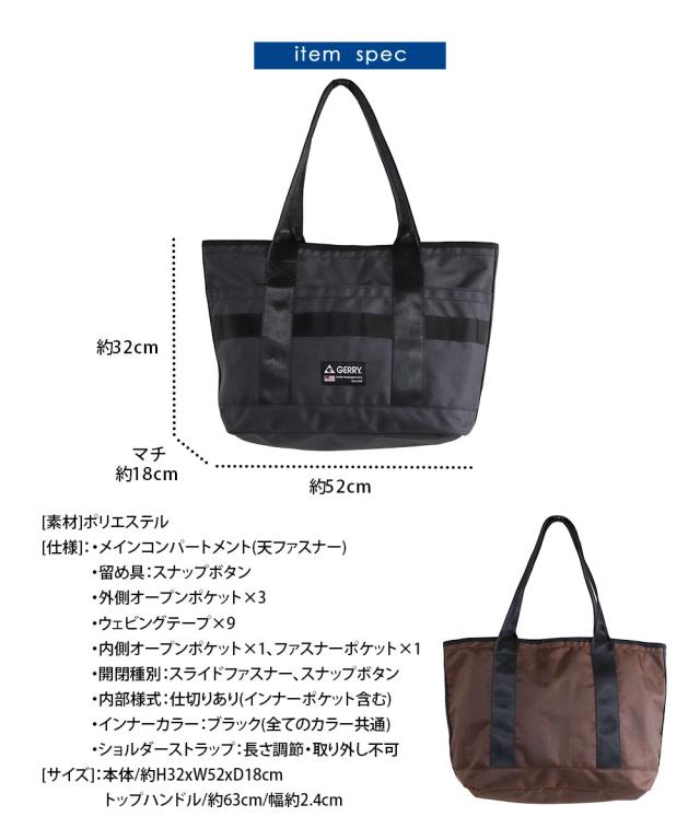 gerry ラゲッジ トートバッグ メンズ 大きめ 撥水 カジュアル 旅行 a4 pc 大容量 ブランド バッグ 鞄 かばん レディース 大人 ミリタリー 軽量 軽い 頑丈 おしゃれ カッコイイ ロゴ プレゼント 黒 ブラック グレー ブラウン ジェリー r2186