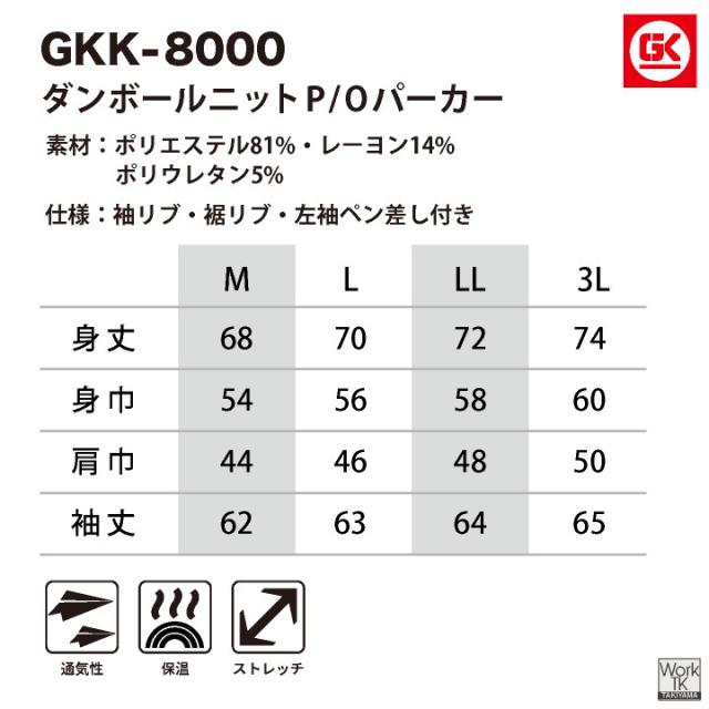 K-ZOC GKK-8000 ダンボールニットP/Oパーカー 軽量で適度な保温性と、程よいやわらかさと光沢感。 ワークだけでなく、普段着・スポーツウェアとして幅広く着用可能!!