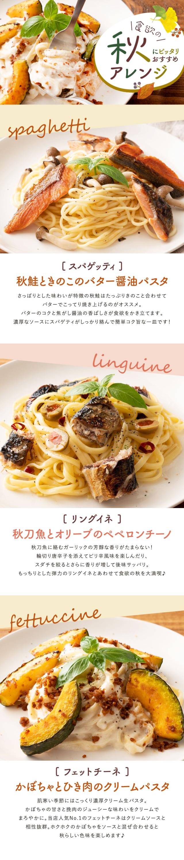 | ・スパゲッティ(180g)×3袋 ・リングイネ(180g)×3袋 ・フェットチーネ(180g)×3袋 ・リングイネ(180g)×1袋+フェットチーネ(180g)×2袋 ・スパゲッティ(180g)×1袋+フェットチーネ(180g)×2袋 ※こちらはパスタのみのセットになります。 1袋(2食)×3袋にて合計6食分のお届けとなります。 |