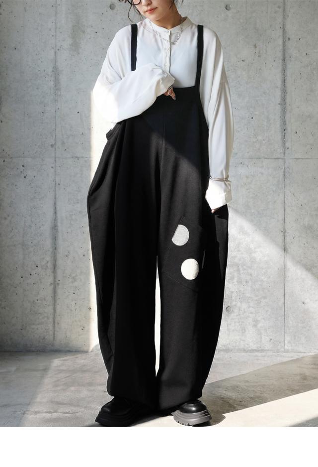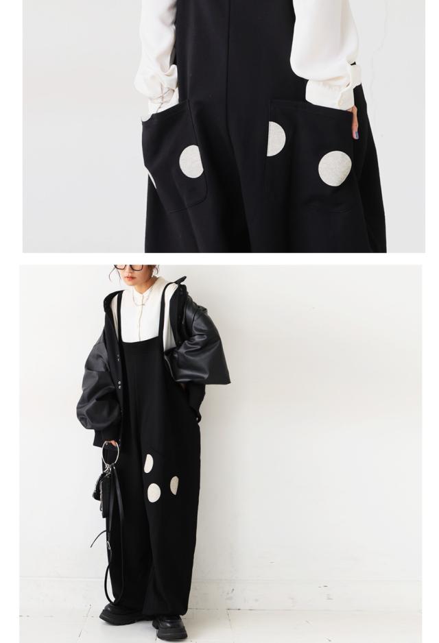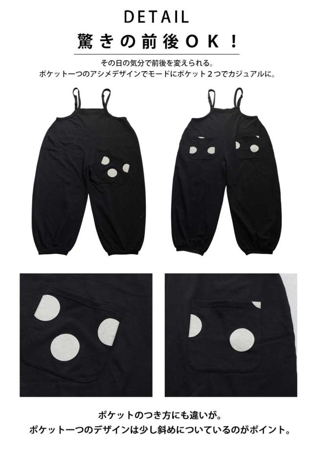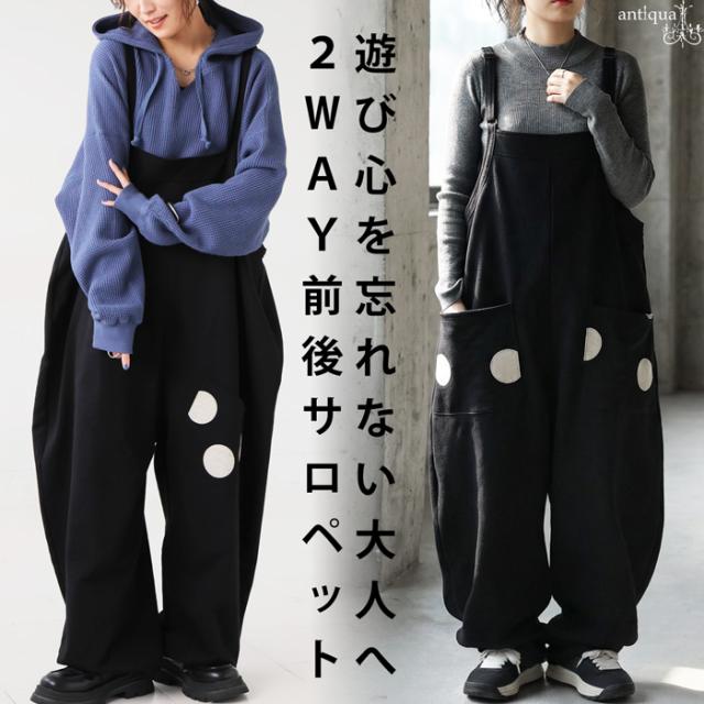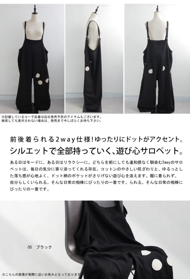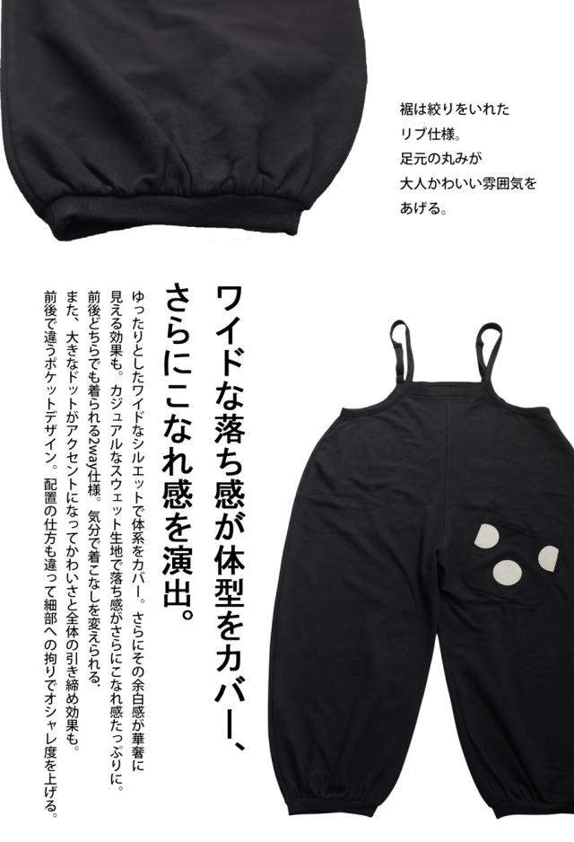 py-00832 サロペット ワイドパンツ オールインワン ゆったり 体型カバー カジュアル 楽ちん 前後着用可能 裾リブ ドット 水玉 柄 スウェット 裏毛 無地 おしゃれ ロング シンプル