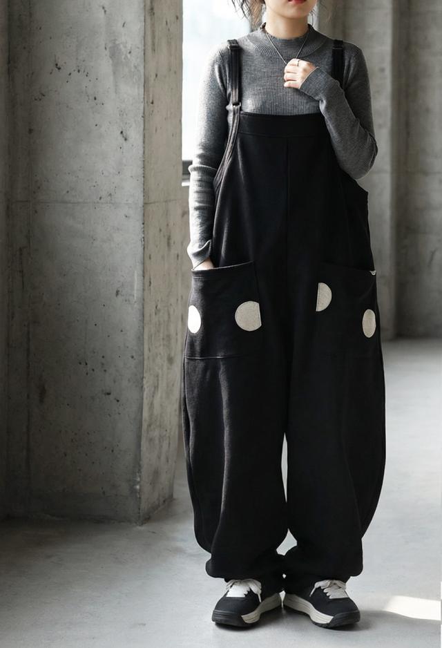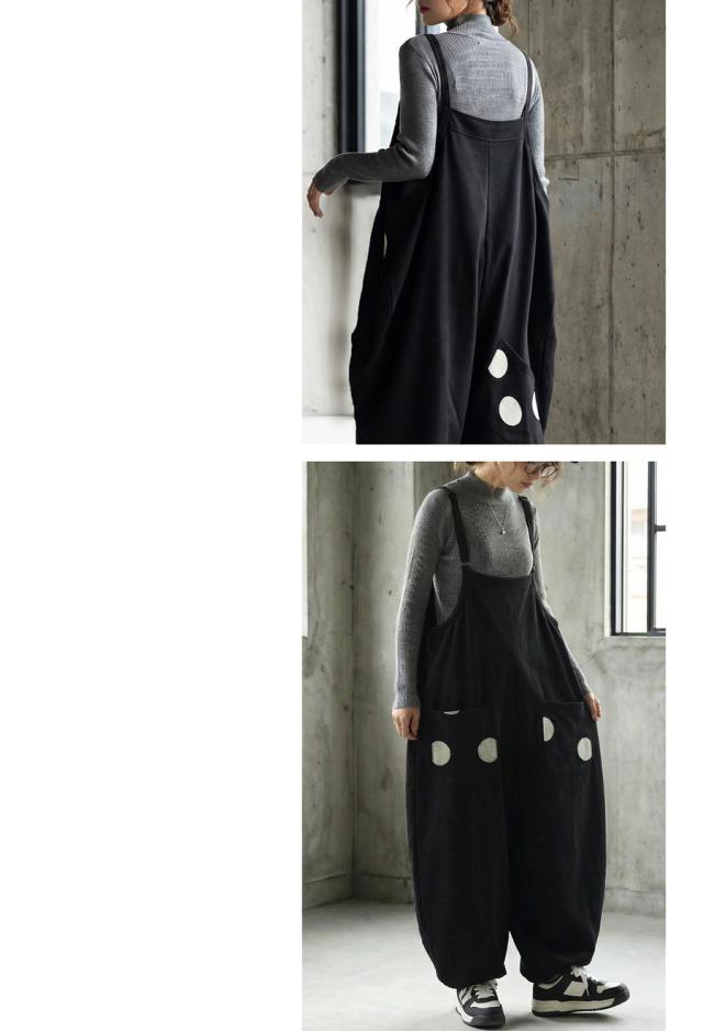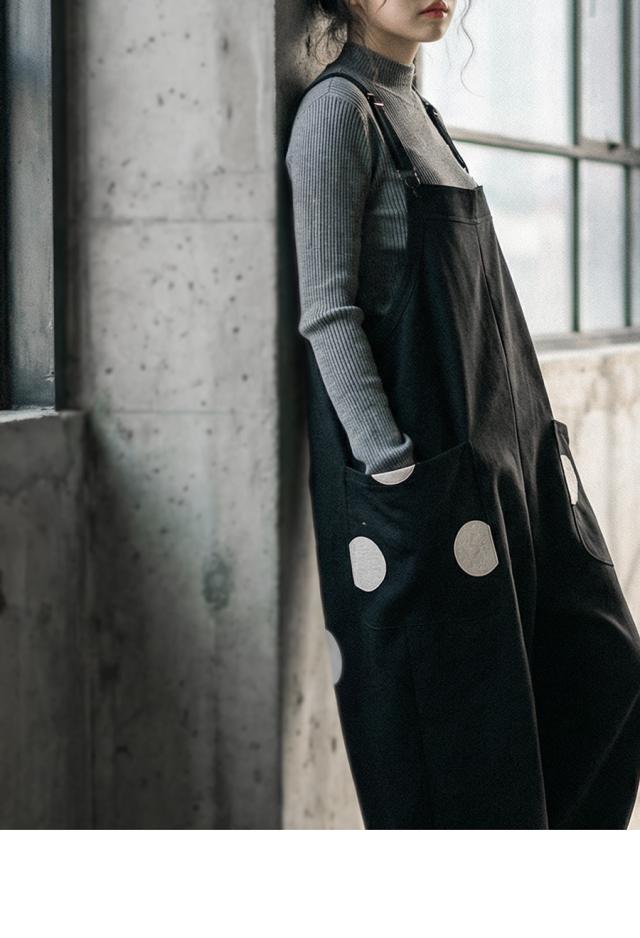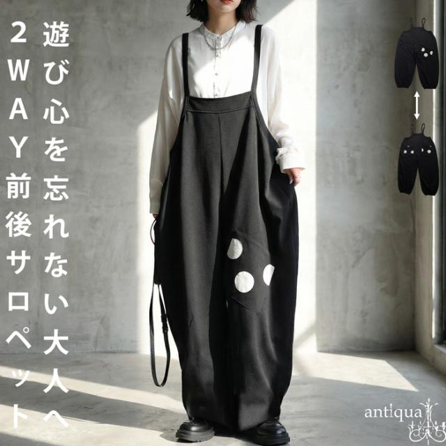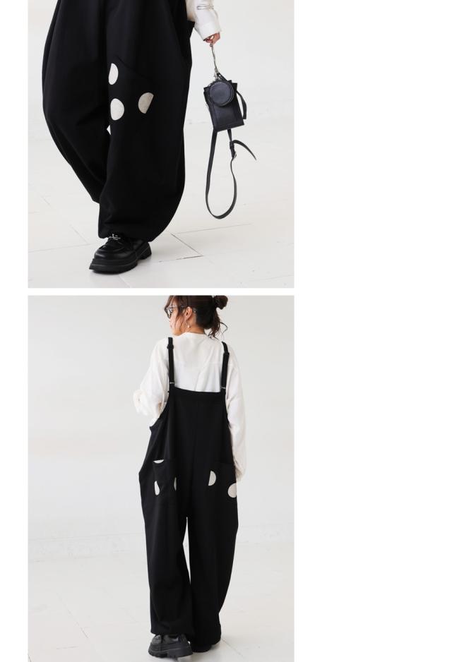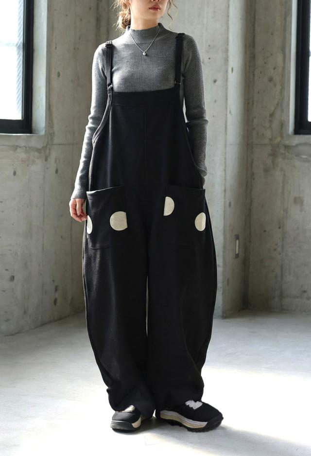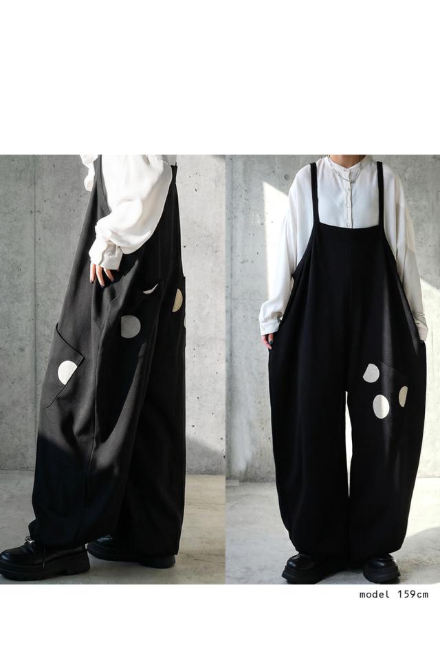 py-00832 サロペット ワイドパンツ オールインワン ゆったり 体型カバー カジュアル 楽ちん 前後着用可能 裾リブ ドット 水玉 柄 スウェット 裏毛 無地 おしゃれ ロング シンプル