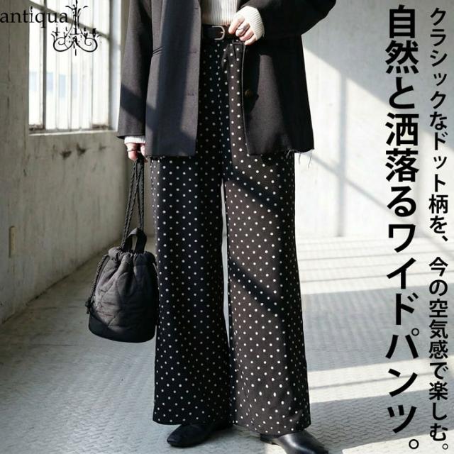 クラシックな水玉柄が印象的なドットパンツで、フェミニンさと落ち着きを両立したボトムスです。