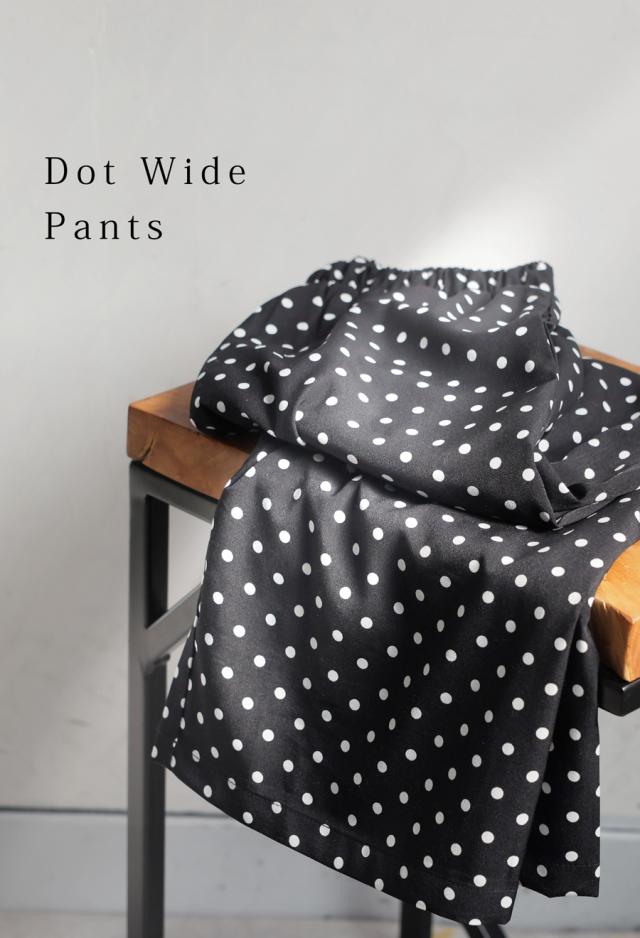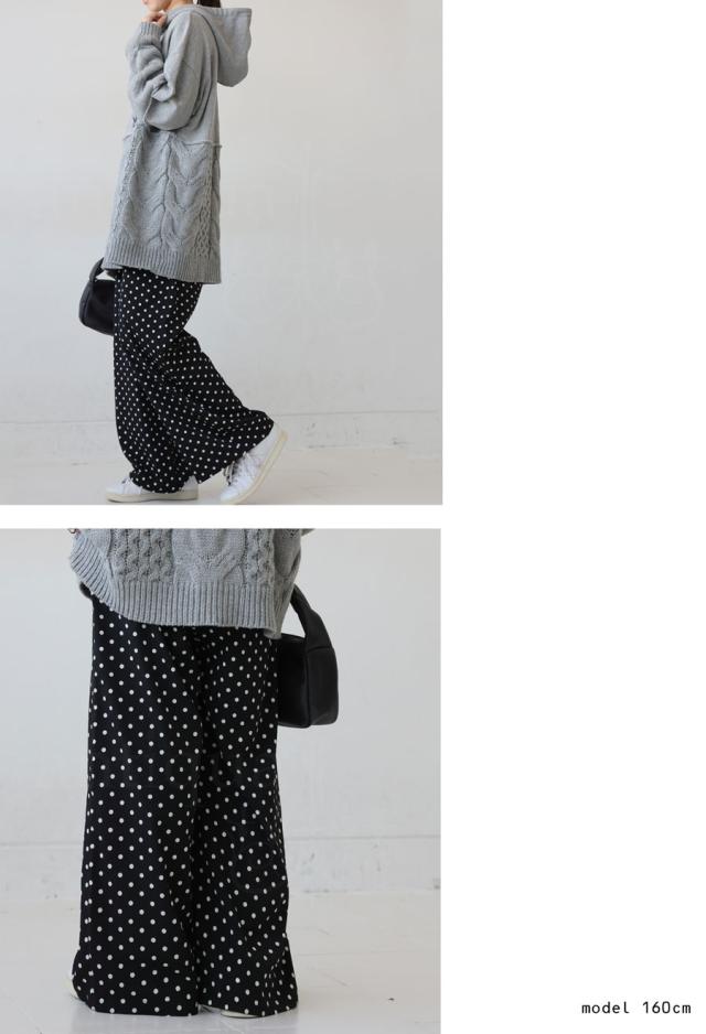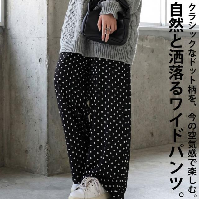 ya-00444 ドットパンツ ボトムス ロングパンツ イージーパンツ 柄パンツ 水玉 丸 フェミニン 体型カバー ウエストゴム 楽ちん 着回し デイリー お出かけ ワンマイルウェア 長ズボン