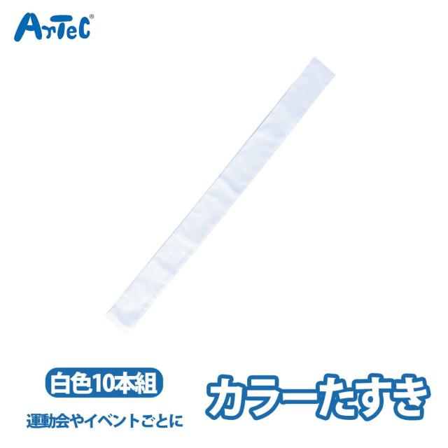 カラーたすき 10本組 白 ホワイト たすき 縫製済 団体用 お得セット 体育祭 ユニセックス 運動会 発表会 リレー 駅伝 小学校 中学校 祭り 応 グッズ 綿素材 イベント用品 チーム分け 装飾アイテム 応援合戦【カラーたすき】