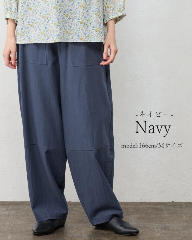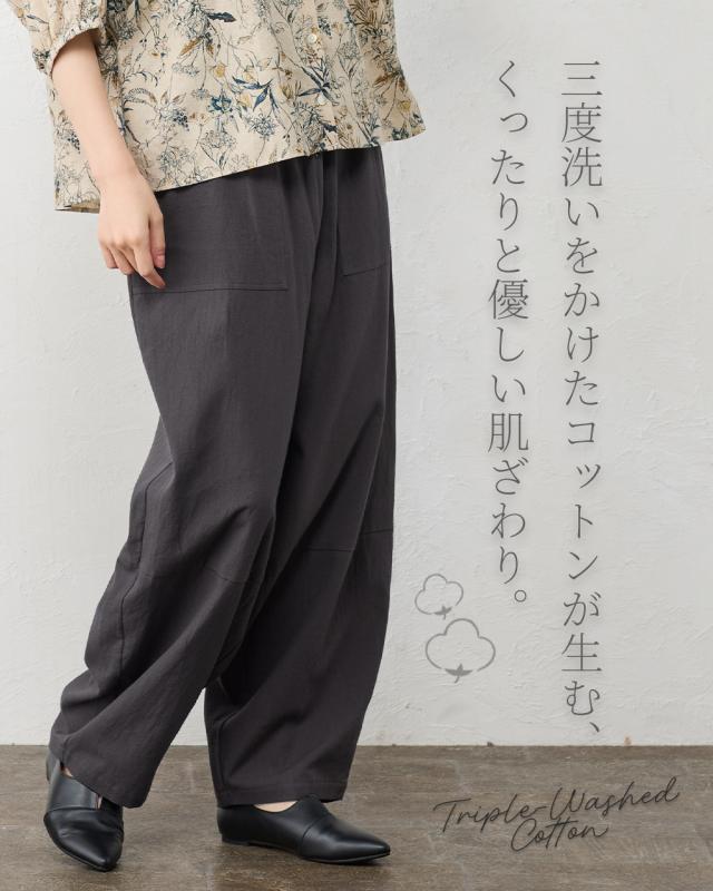 【日本製】ワイドパンツ レディース パンツ トリプルウォッシュ 綿 綿100 コットン コットン100 ゆったり 大きいサイズ 大きめサイズ オールシーズン 30代 40代 50代 60代 快適 ズボン ボトムス ウエストゴム きれいめ 前ポケット ナチュラル カジュアル