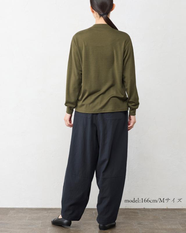 ほどよいハリとくったりとした落ち感があり、体のラインを拾わず自然な立体感をつくります。