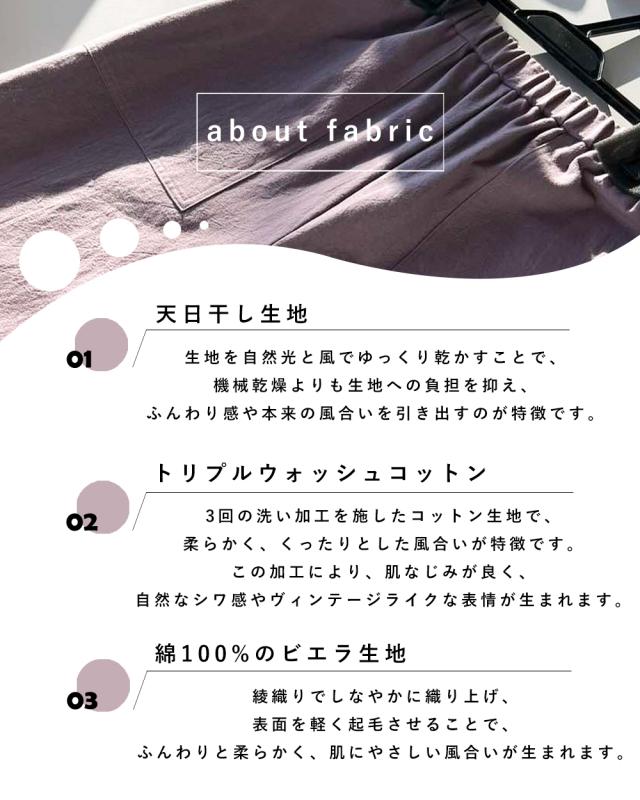 | 商品詳細/その他 | トリプルウォッシュ加工を施したコットンワイドパンツ |