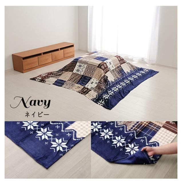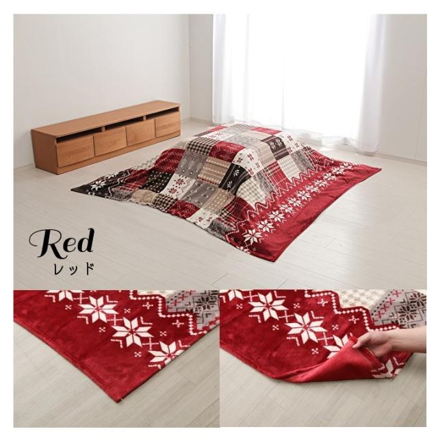 リーチェ こたつ布団上掛け ノルディック柄 なめらか フランネル 洗える 195×245cm 長方形 ネイビー レッド