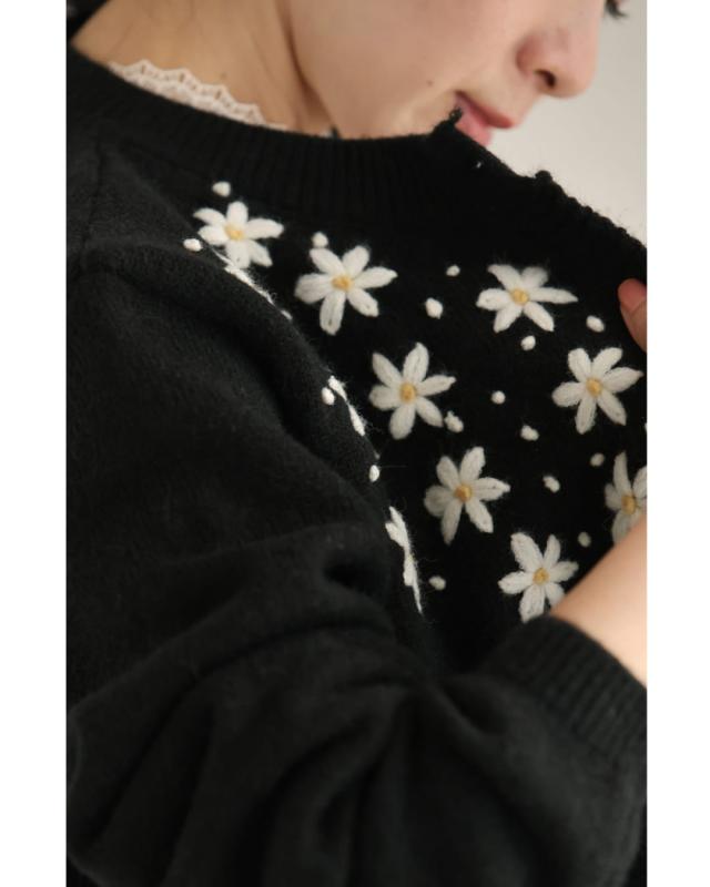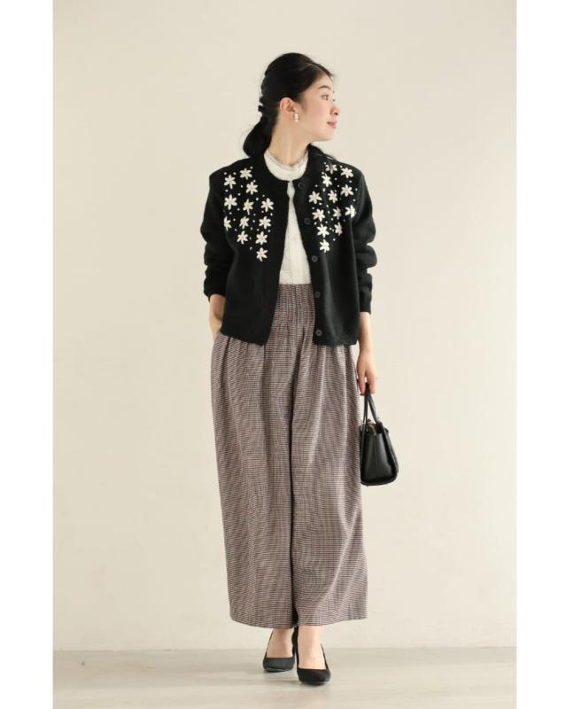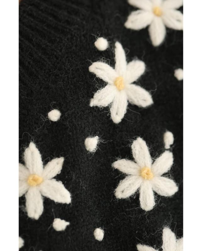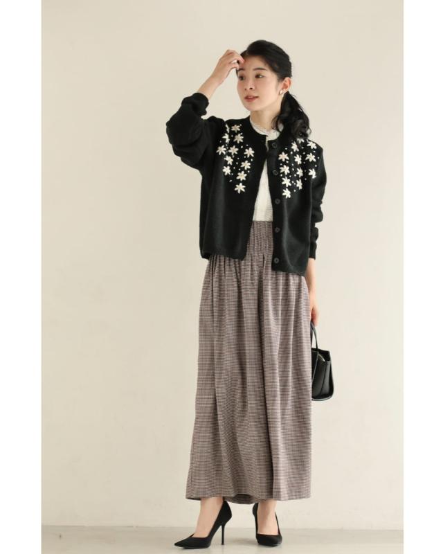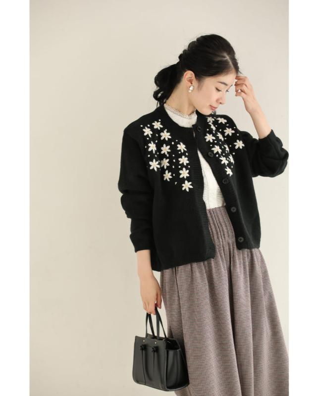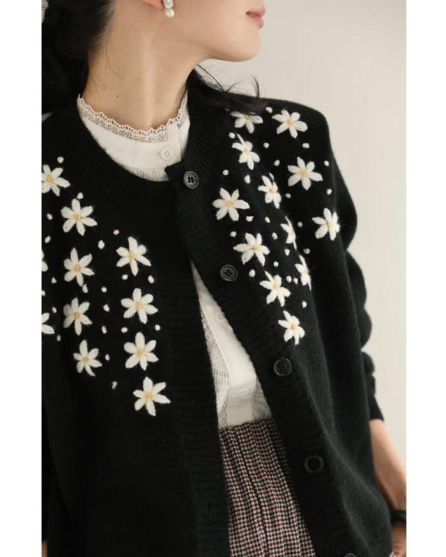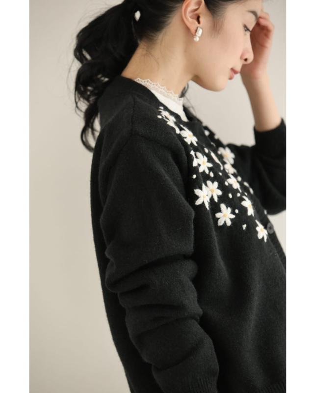wkj00187 新作 新着 再入荷 CAWAII FRENCHPAVE フレンチパヴェ エレガント ベーシック カジュアル 可愛い かわいい カワイイ おしゃれ オシャレ お洒落 個性 個性的 定番 ベーシック 大人かわいい 大人可愛い 上品 女性らしい デザイン スタンダード ナチュラル きれいめ キレイめ シンプル フェミニン レディース レディースファッション 大人 ママ ミセス 30代 40代 50代 60代 黒 降りしきる 花 雪 ニット カーディガン 羽織り 軽アウター 前ボタン 長袖 ロング袖 丸首 クルーネック 刺繍 細見え 短め丈 ショート丈 S M L 2L フリーサイズ フリー 小さめ 小さめサイズ小さい 小さいサイズ 低身長 痩せ ほっそり 小柄 細身 標準サイズ 大きめシルエット 大きい 大きめ ビッグシルエット ぽっちゃり F サイズ自由 厚手 あったかい あたたかい 暖かい ぬくい 春 秋 冬 秋服 秋物 冬服 冬物 体型カバー ブラック 黒 花柄 フラワー柄 普段着 日常使い ヘビロテ 毎日着れる デイリー使い おでかけ 旅行 女子会 デート 買い物 大人女子