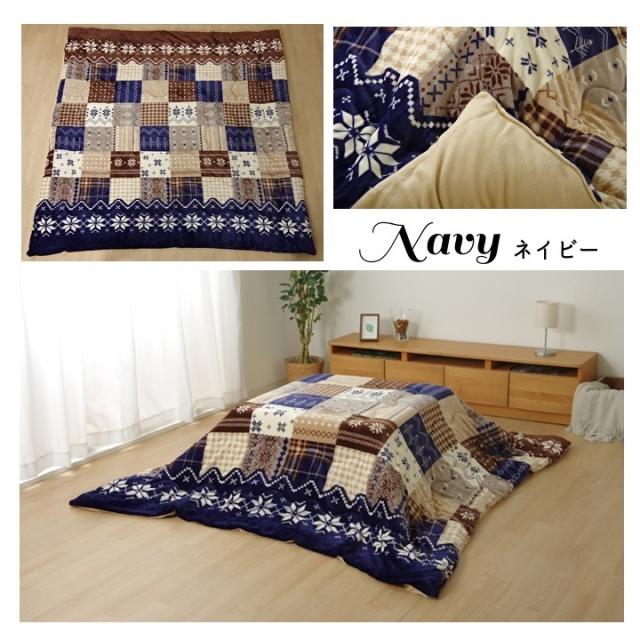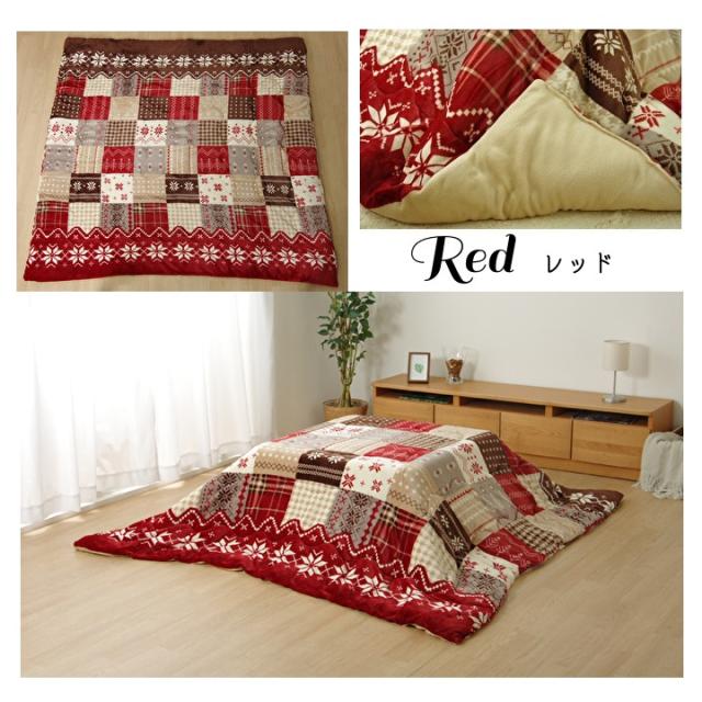 リーチェ こたつ布団 薄掛け ノルディック柄 なめらか フランネル 洗える 190×190cm 正方形 ネイビー レッド