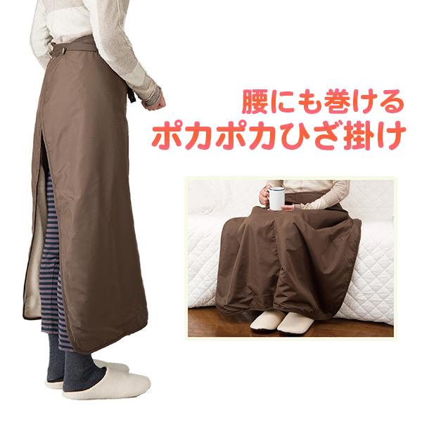 送料無料 腰にも巻ける ポカポカひざ掛け(ブラウン)-撥水加工 ブランケット フリース 大判 アルミ加工 洗濯OK 巻きスカート 裏ボア アウトドアにも