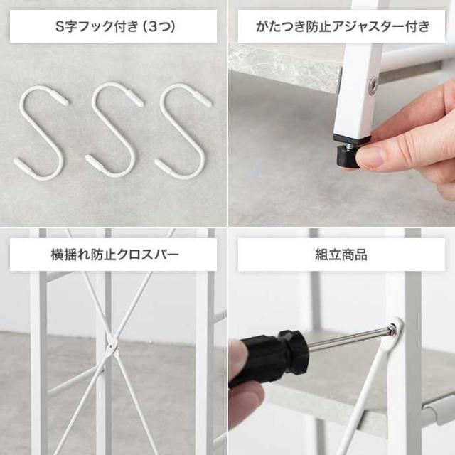 【耐荷重】天板:約5kg 、可動棚:各約2kg、サイドフレーム:約0.3kg、吊り下げポール:約2kg
