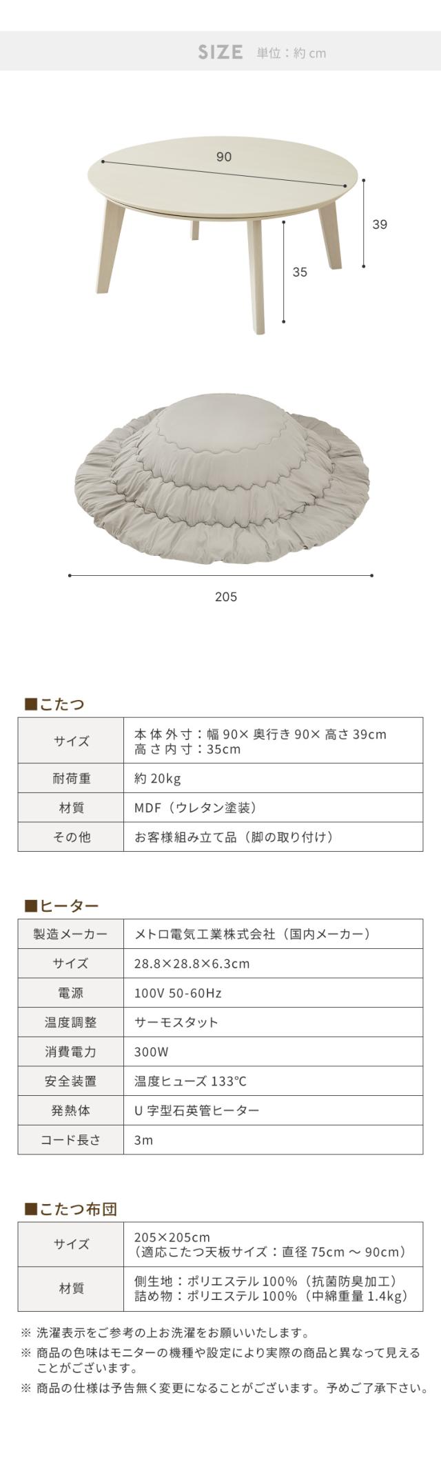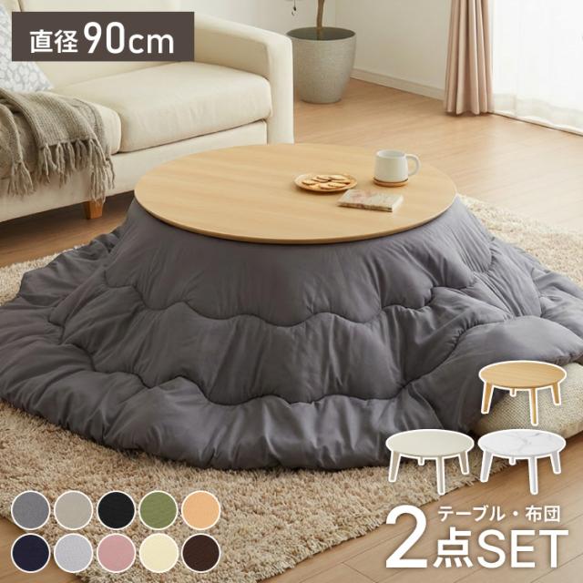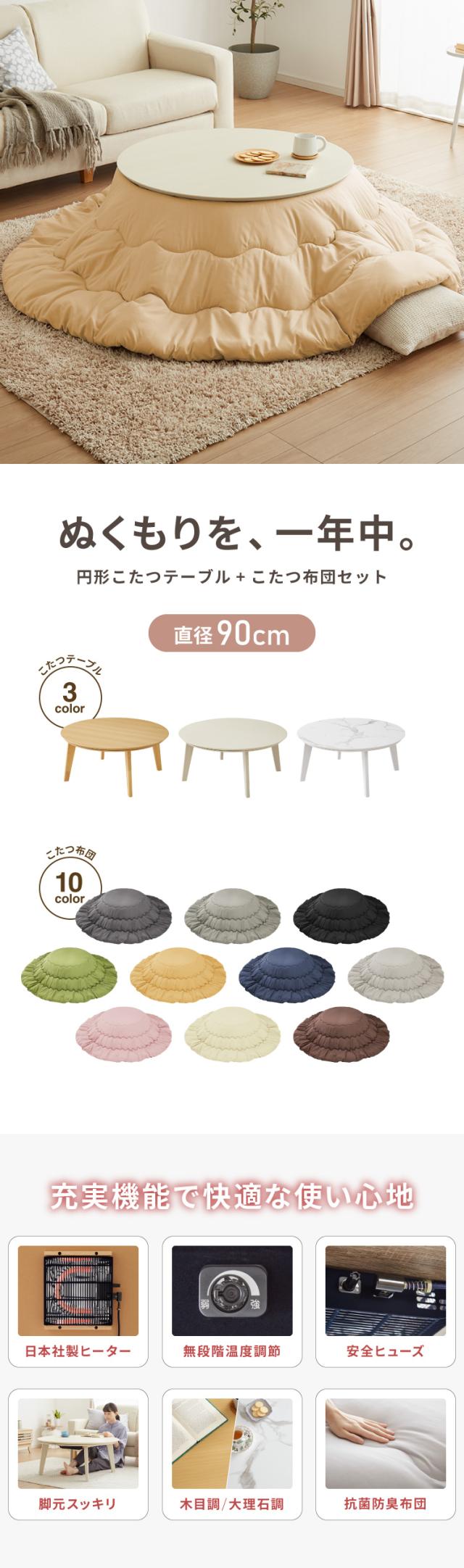 円形こたつ 90×90cm 石英管 こたつ布団セット 選べる10色 天然木脚 こたつテーブル 炬燵 家具調こたつ 丸型 こたつ テーブル 掛け布団 ローテーブル センターテーブル(代引不可)【送料無料】