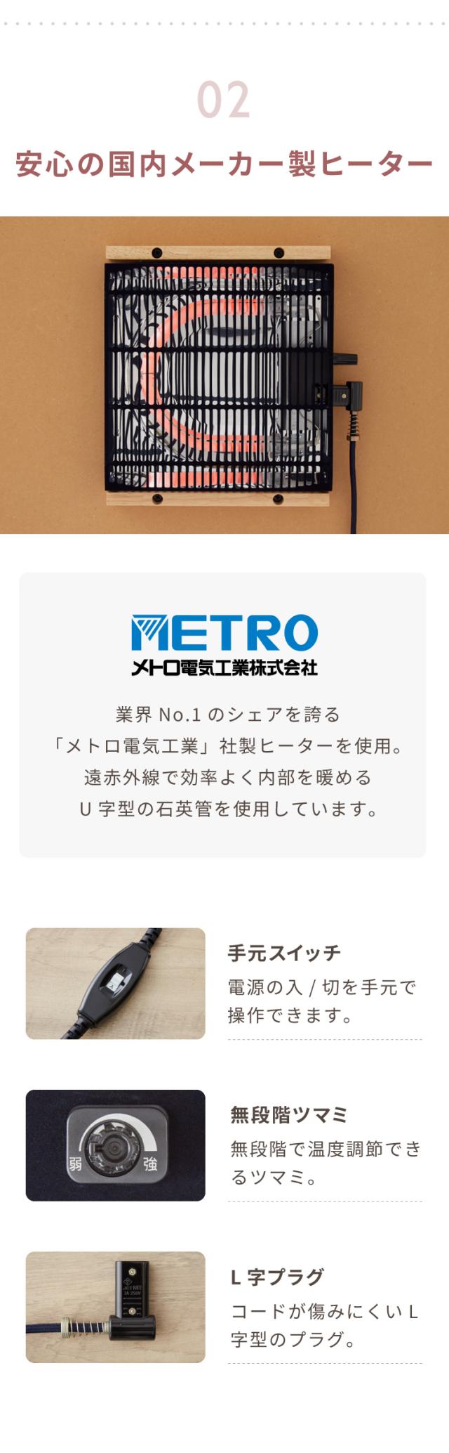 ・ヒーターには、国内メーカーの「メトロ電気工業」製の石英管ヒーターを採用。
