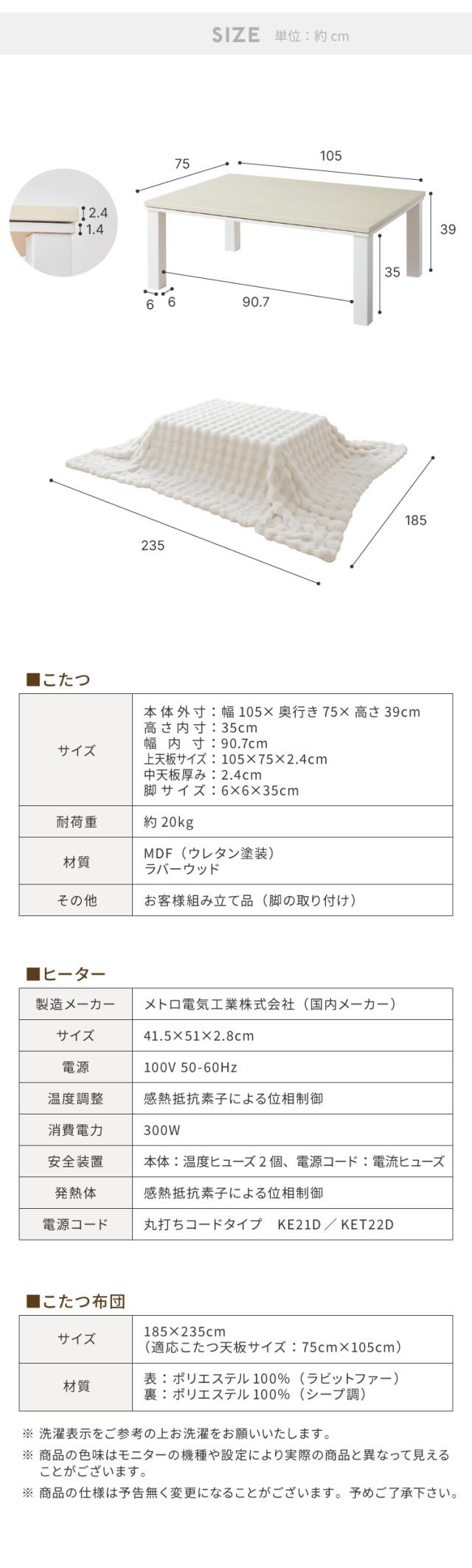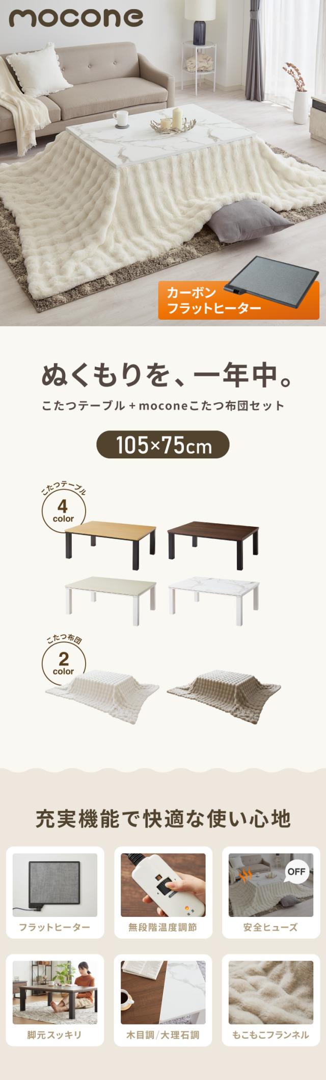 大理石調こたつ フラットヒーター 105×75cm こたつ布団セット もこもここたつ布団 mocone モコネ ふわふわ こたつテーブル 炬燵 長方形 韓国インテリア こたつ 掛け布団 ローテーブル(代引不可)【送料無料】