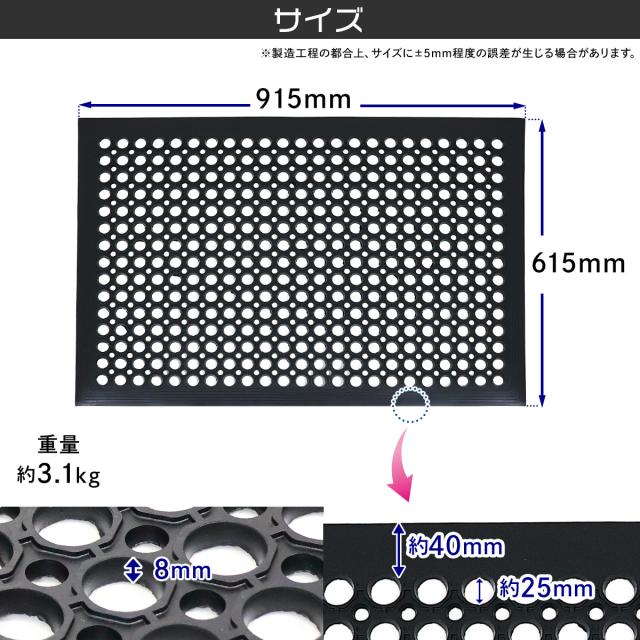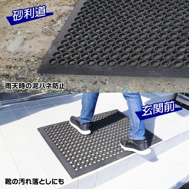 【滑りにくいマットには理由があります】全面水抜け構造で、水によるスリップを防ぎます。また極厚8mmのゴム素材マットはしっかりとグリップが効き、防滑性・耐候性・防水性・防音性に優れています。