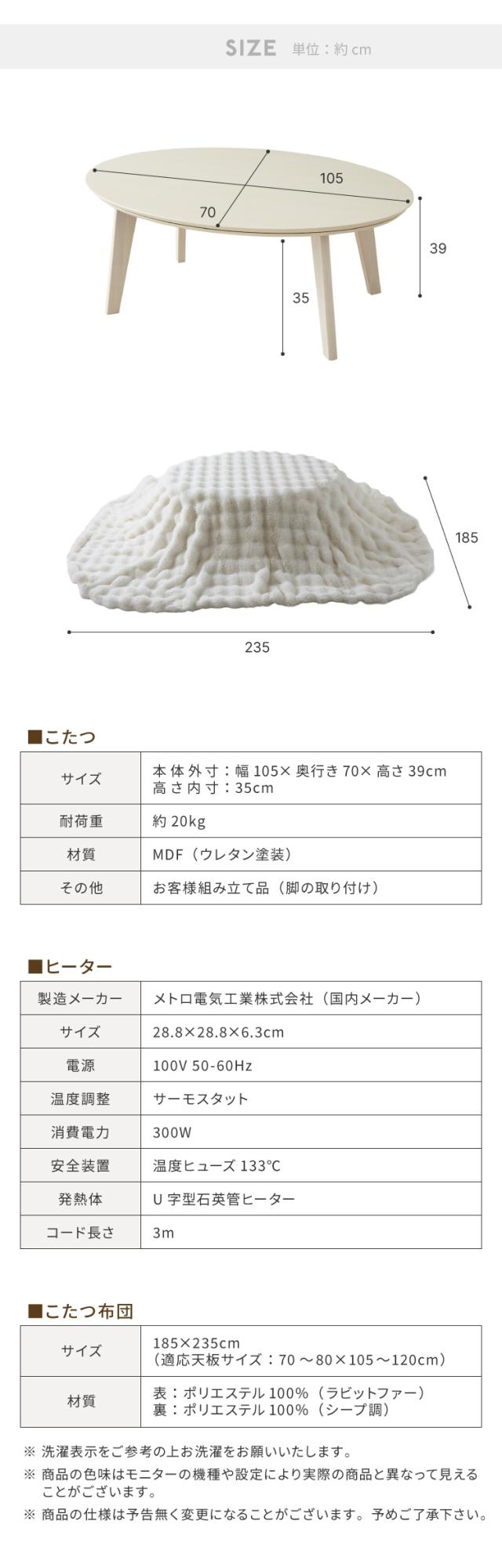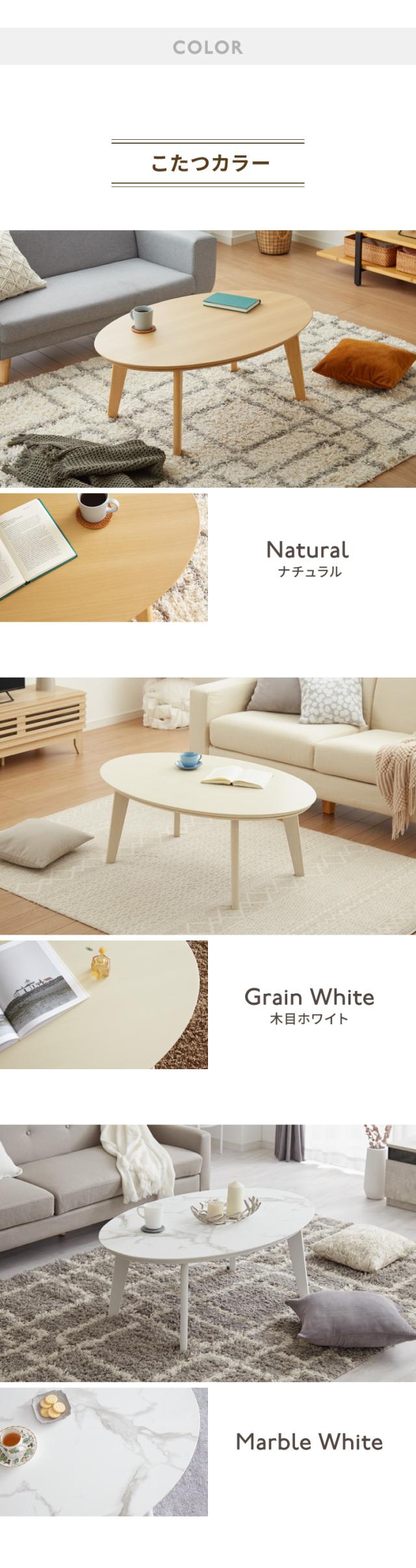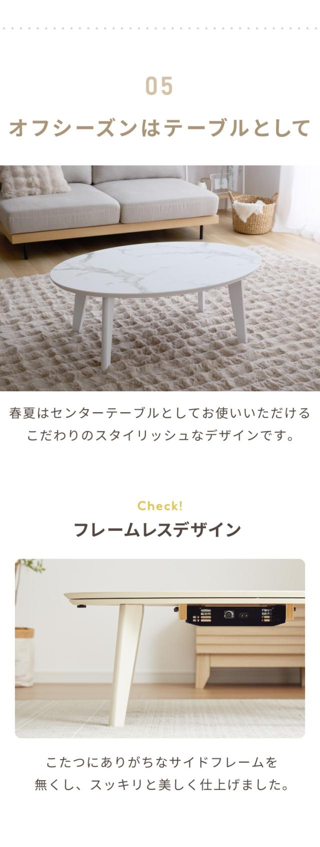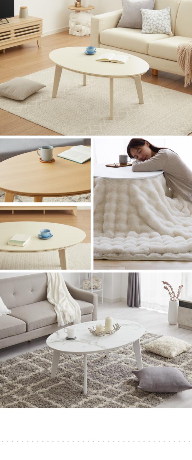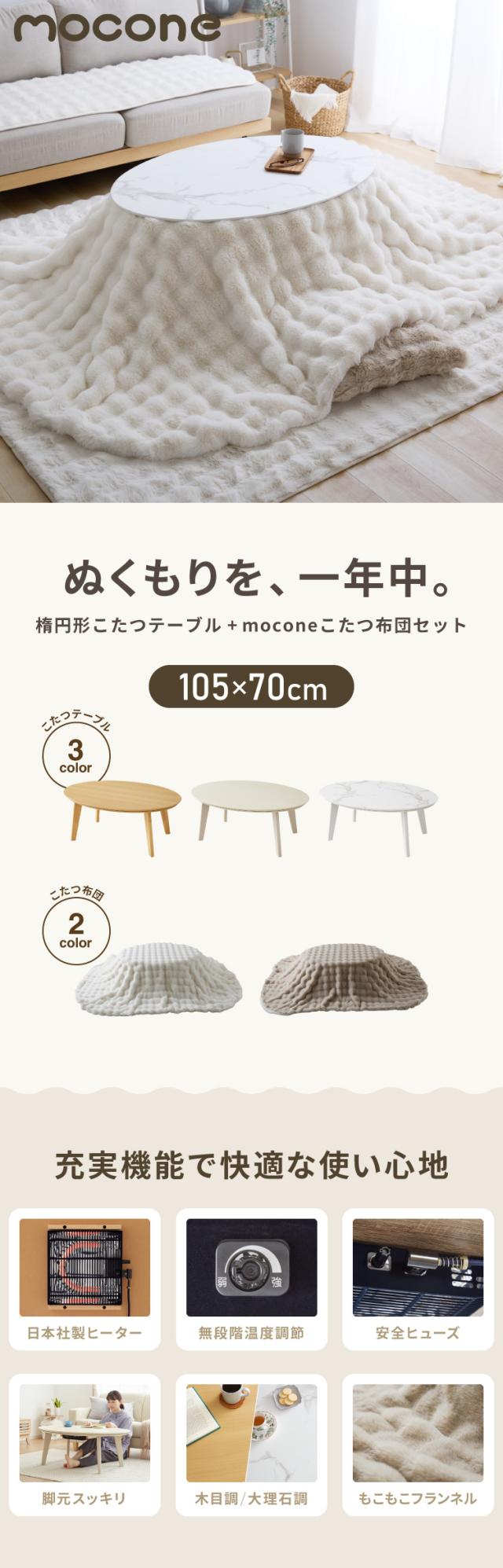 楕円形こたつ 105×70cm 石英管 大理石調 オーバルテーブル こたつ布団セット 天然木脚 もこもここたつ布団 mocone モコネ ふわふわ こたつテーブル 炬燵 丸型 韓国インテリア 掛け布団 ローテーブル(代引不可)【送料無料】