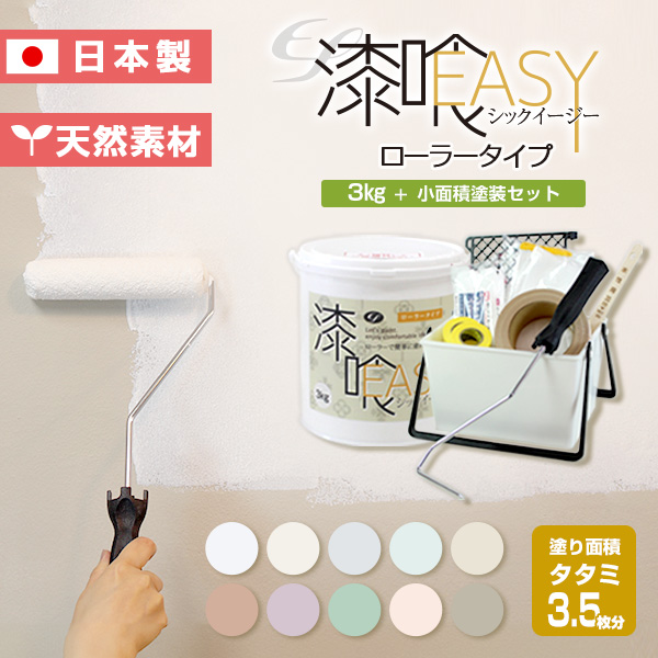 EF漆喰EASY 3kg + 小面積塗装セット 塗り面積 畳3.5枚分 <10色> ローラーで塗れる (水性 しっくい 壁 日本製 DIY) STK-50N