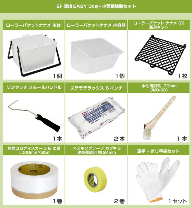 EF漆喰EASY 3kg + 小面積塗装セット(しっくい塗料/漆喰塗料/水性/小面積/STK-50N)