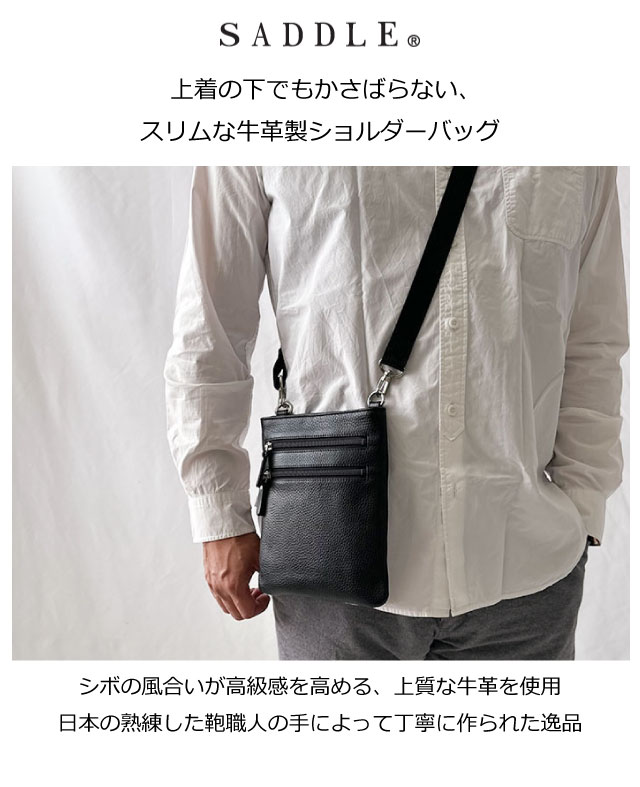 ショルダーバッグ メンズ 大人 革 日本製 豊岡製 うすマチ 牛革 ウスマチ ショルダーバッグ 斜めがけバッグ 斜め掛けバッグ 薄マチショルダー ショルダーバック メンズバッグ B6サイズ パパ 父 ショルダー 男性用 メンズバック 黒 旅行 大人 かっこいい SADDLE 16478