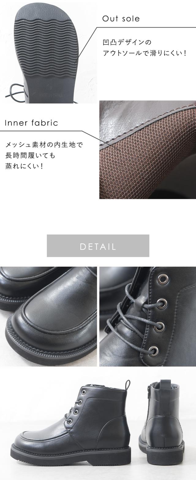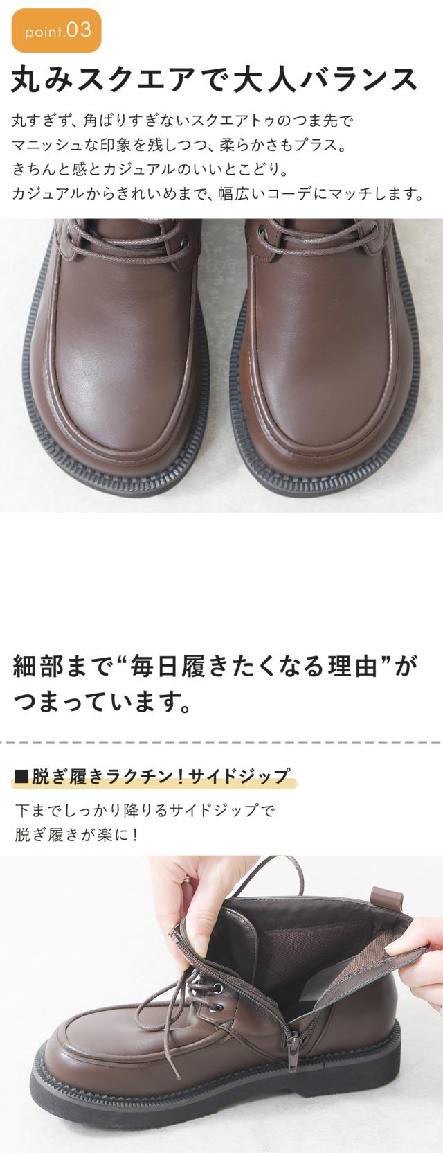ショートブーツ レディース レースアップ サイドジップ ローヒール スクエアトゥ 痛くない 歩きやすい 柔らかい 疲れない 軽量 軽い 滑らない 履きやすい 通勤 通学 おしゃれ カジュアル 大きいサイズ 3L 黒 ブラック 靴