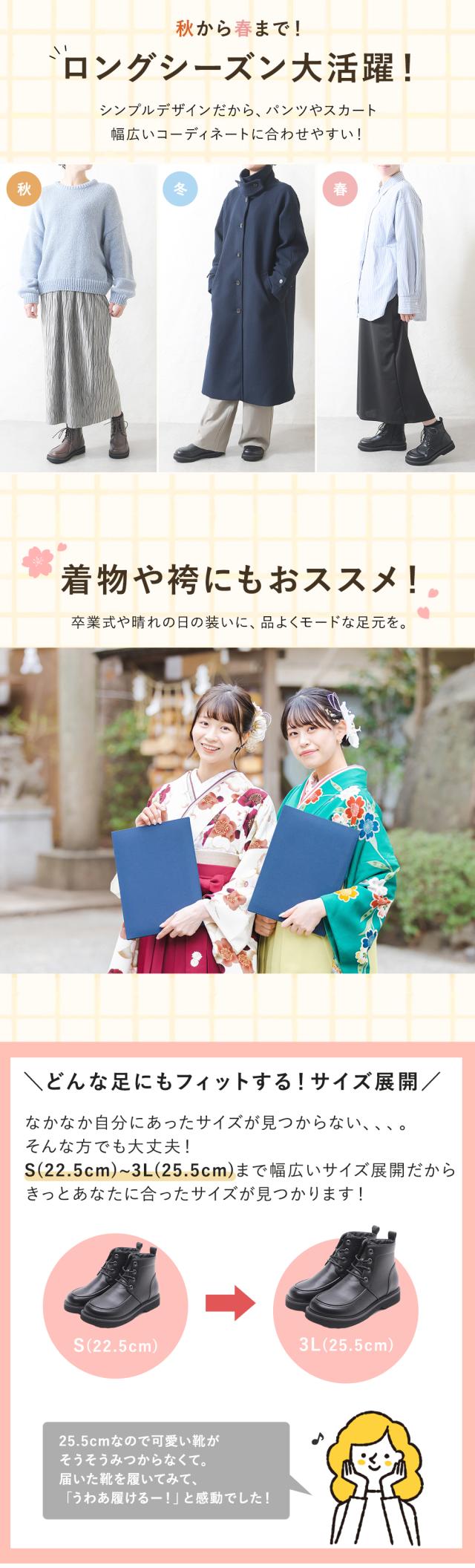 秋冬だけでなく、春先まで長く履けるレースアップブーツ。