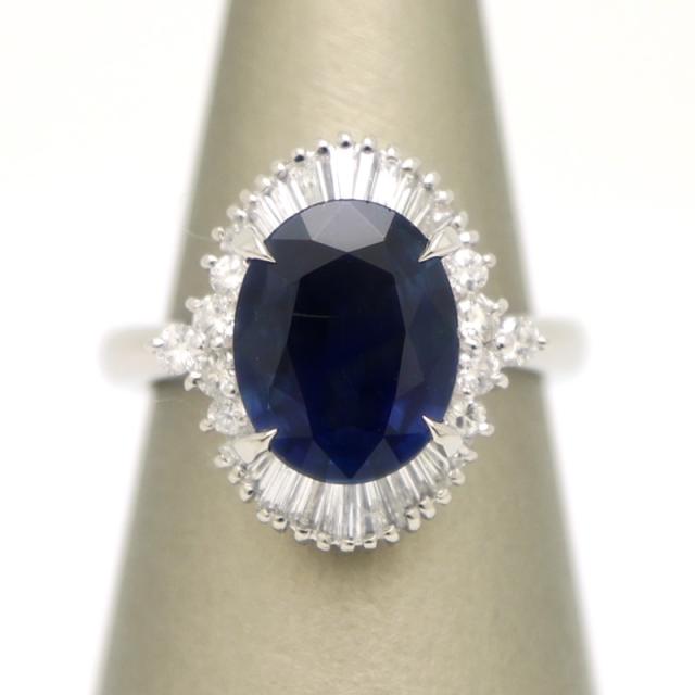 【楠本質店/元住吉】Pt900 サファイア&ダイア リング サファイア3.30ct/ダイヤ0.59ct 11号 ソーティング付【中古】