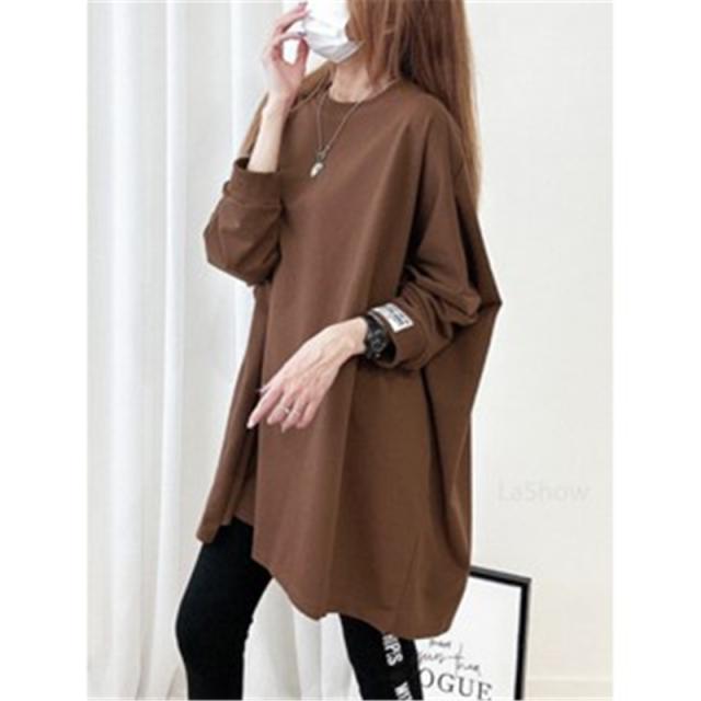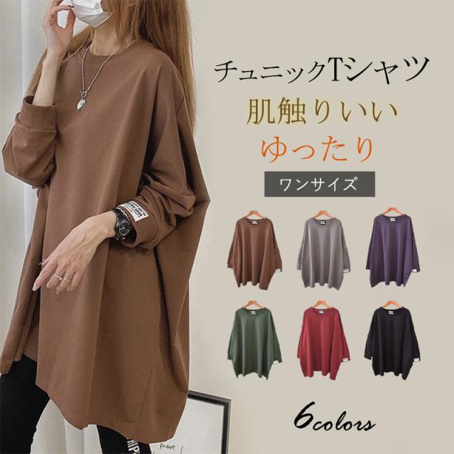 チュニックTシャツ レディース ロングTシャツ トップス カットソー シンプル 体型カバー 可愛い 韓国風 無地 肌触りいい ゆっ