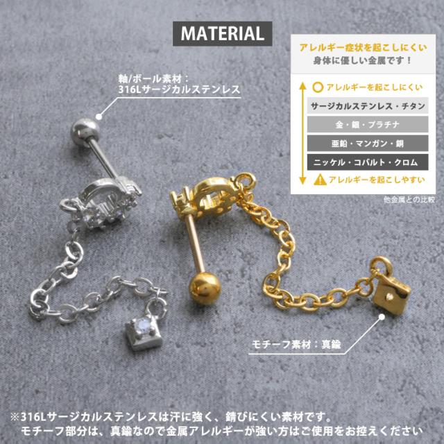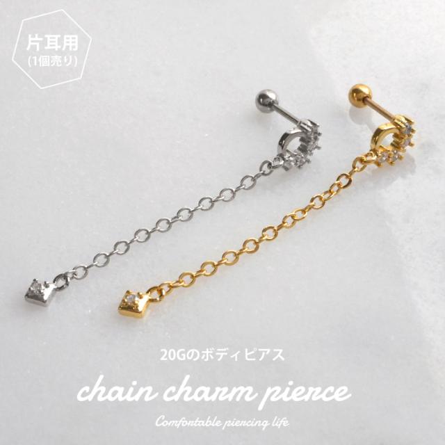 かわいい ボディピアス 20G 揺れるチェーンチャームバーベル ストレートバーベル ボディーピアス 軟骨ピアス トラガス ヘリックス