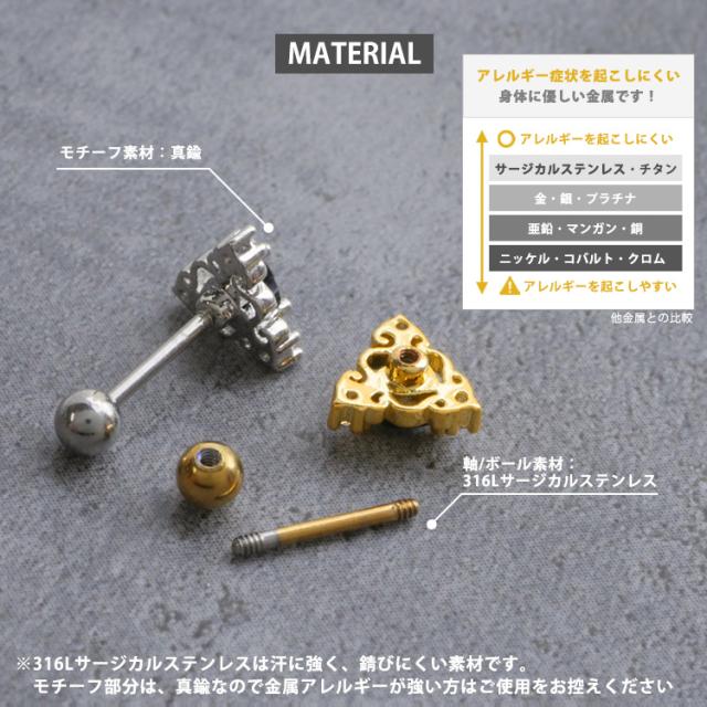 □材質:軸&ボール(316Lサージカルステンレス)、モチーフ(真鍮)
