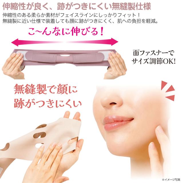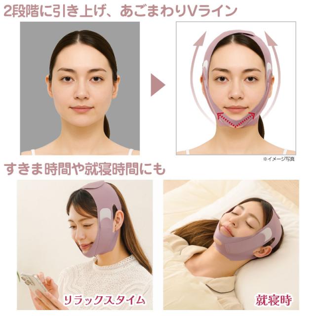 頬やあご下のたるみを包み込むようにサポートし、シャープなVラインを目指せます。