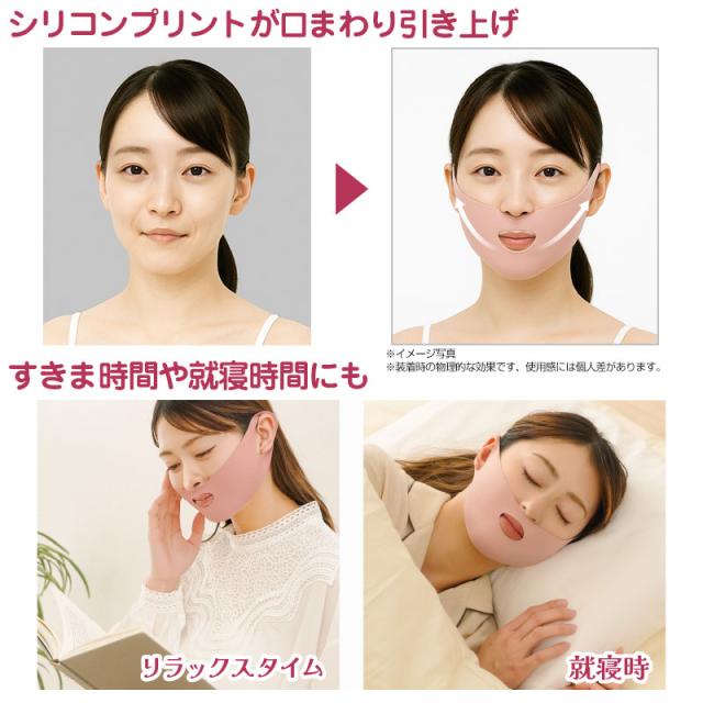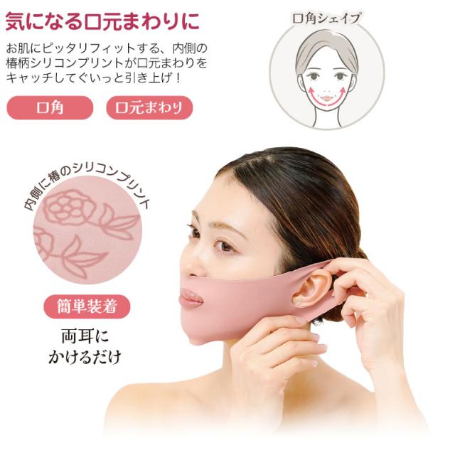| 商品説明 | 気になる口元まわりを、ぐいっと引き上げて口角UPで大正美人もうっとり!最近口元に自信がない、そんなあなたには「大正美人もうっとり!ぐいっとリフトベルト」。内側の椿柄シリコンプリントが気になる口元まわりの肌にぴったり密着し、お肉をキャッチ!マスクのように耳にかけてしっかり引き上げる!笑顔に差が出る、リフトアップ習慣をあなたの日常に。 |
