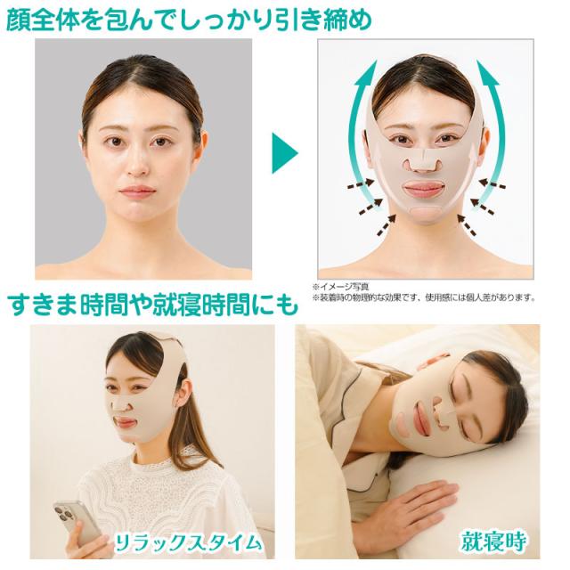 顔全体をしっかりホールドしてフェイスラインを引き締める小顔マスクです。