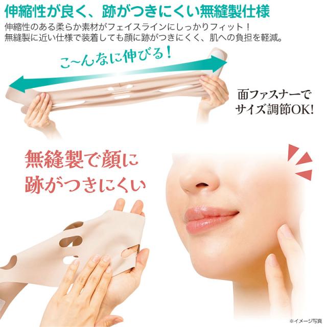 | 商品説明 | 顔全体をぎゅぎゅっと引き締め昭和美人もばっちりのアイドル級小顔を目指す!ほほあごが引き締まった小さい顔に憧れるそんなあなたには「昭和美人もばっちり!ぎゅぎゅっと小顔マスク」。ワイドなベルトが顔全体をまるごと包んで引き上げる!全体的にリフトアップすることでアイドルみたいな小顔を目指します。面ファスナー式で着脱もラクラク、サイズ調整も可能だから“ながらケア”にもぴったり♪ |