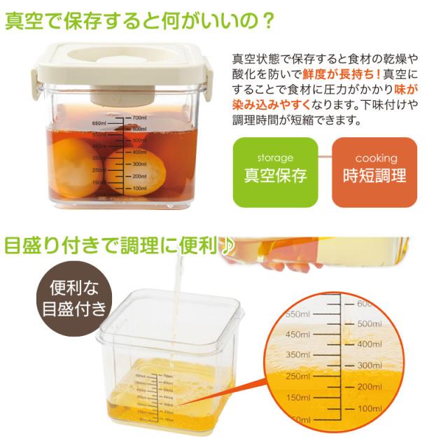 プッシュでかんたん 真空ボックス 700mL 保存容器 密閉容器 鮮度保持 食品保存 ストッカー 収納 作り置き 保存ボックス 整理整頓 台所用品