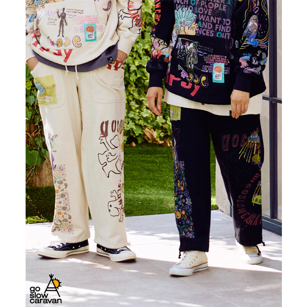 20%OFF / go slow caravan ゴースローキャラバン / 空紡糸裏毛 落描きMIX TRAパンツ / 352613 / スウェットパンツ / プリント / コットン / メンズ / 2025秋冬