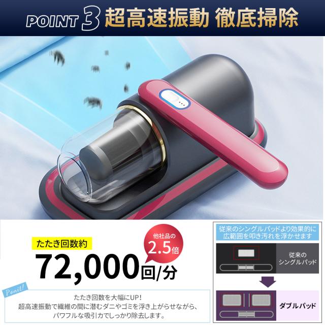 - セール中で3000円程だったので購入しました。 届いてすぐ使用してみましたがUV機能と吸引機能だけのような感じがします… 吸引するためのモーターの振動なだけで叩き機能なのかって言われるとあるのか分からないです。ないような気がします。 セールで3000円だったので使えたらいいなぐらいで期待もしていませんでしたが3000円の理由が凄く分かります。 布団のゴミを吸引してくれるので3000円だといい買い物出来たかなと思うので星4か5ですが通常価格の2万は出せないかなぁ思うので間をとって星3にしました。 説明書は全て中国語?表記ですし叩き機能を感じないことを考えると通常価格なら星1か2かな?