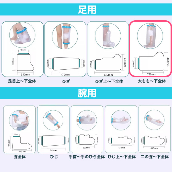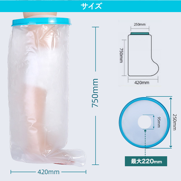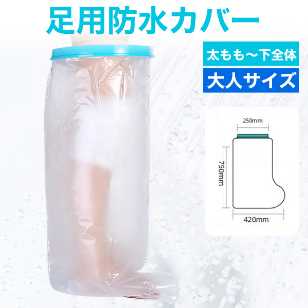 防水カバー【足用 太もも〜下全体】大人サイズ 包帯 ギプス 濡れない お風呂 入浴 介護 介助 水仕事 水の侵入を防ぐ 密着シリコンカバー シリコン素材 骨折 ギブス 怪我 濡らさない 丈夫 衛生用品 右足 左足 左右兼用 送料無料