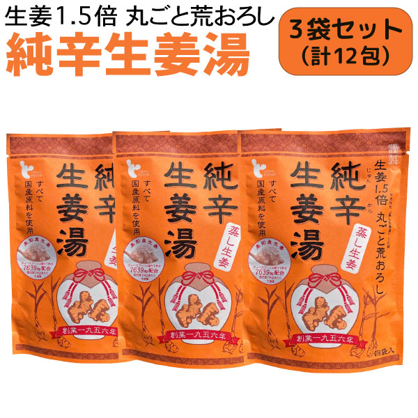 イトク食品 純辛蒸し生姜湯 4袋入×3個セット 【メール便送料無料】 蒸し生姜 乾燥 風邪予防 冷え性 花粉症 整腸作用 国産 しょうが湯
