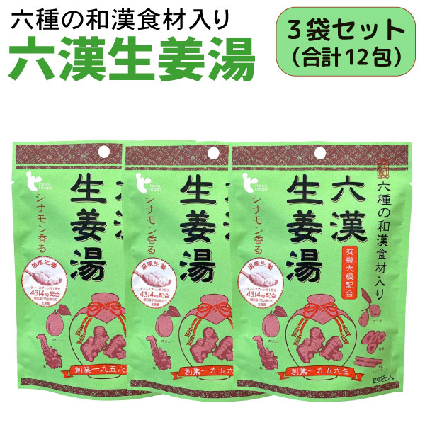 イトク食品 六漢 生姜湯 4袋入×3個セット 乾燥 風邪予防 冷え性 花粉症 整腸作用 国産 しょうが湯 生姜 蒸し生姜湯