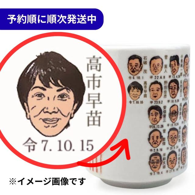商品名:予約販売 高市新総理大臣 歴代首相漫像湯呑み 寿司湯呑み 湯呑 ゆのみ 湯呑み 茶器 美濃焼 食器 国産 日本製 箱無し