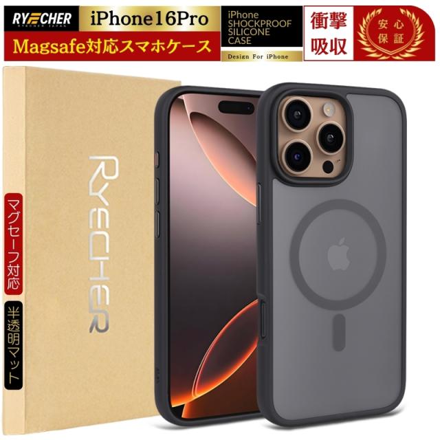【 MagSafe対応・半透明美学 】 スマホケース iPhone 16Pro MagSafe 対応 iPhone16Pro ケース マグセーフ対応ケース iPhone16 Pro さらさら PC背面 半透明 マット マグセーフ ワイヤレス充電対応 RYECHER アイフォン 16プロ magsafe対応 カバー