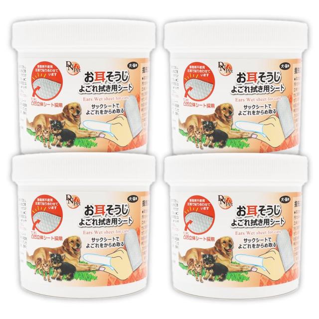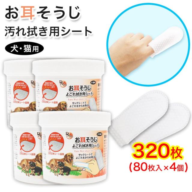 犬・猫用 お耳そうじ よごれ拭き用 シート 320枚 (80枚入 ×4個) 大容量 接着剤不使用 立体シート