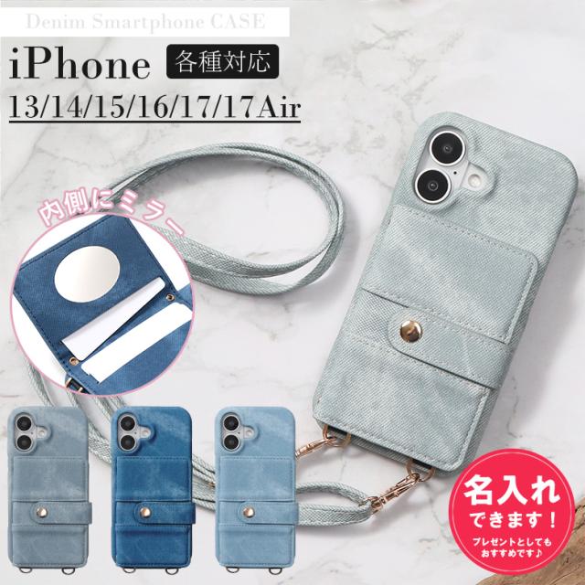スマホショルダー iphone17 Air ケース デニム iphone15 iphone14 ケース iPhone13 iPhone16 ストラップ ストラップ付きIPHONEケース スマホショルダー メンズ レディース おしゃれ かわいい 可愛い カード入れ 背面 韓国 カバー 紐付き 名入れ