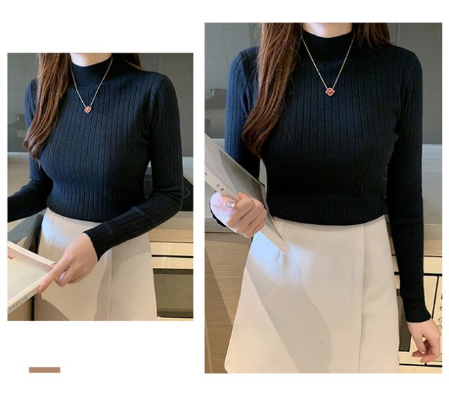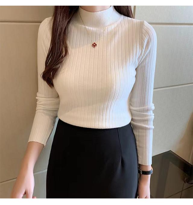 冬新作 リブニット セーター レディース 秋冬 ハイネック 重ね着 着回し力 ニットソー カットソー トップス タートルネック ニット 高伸縮 柔らかい 薄手 無地 長袖 縦リブ 着痩せ 小顔 カジュアル シンプル 春秋冬 6色 ポイント消化