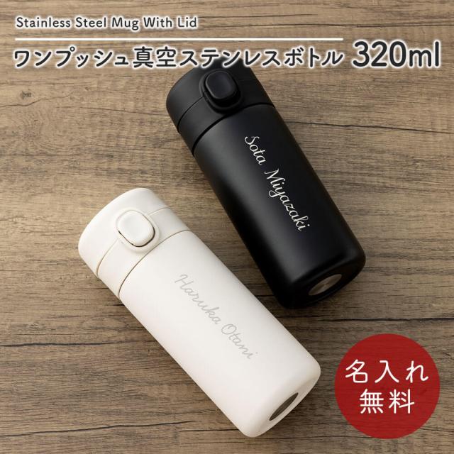 水筒 マグボトル 320ml ワンタッチ ワンプッシュ 真空二重構造 ロック 水筒 ステンレスボトル マグボトル マイボトル ステンレス サーモ 真空断熱 保温 保冷 魔法瓶 洗いやすい スポーツ シンプル かっこいい 可愛い 直飲み 名入れ 名前入り
