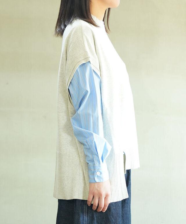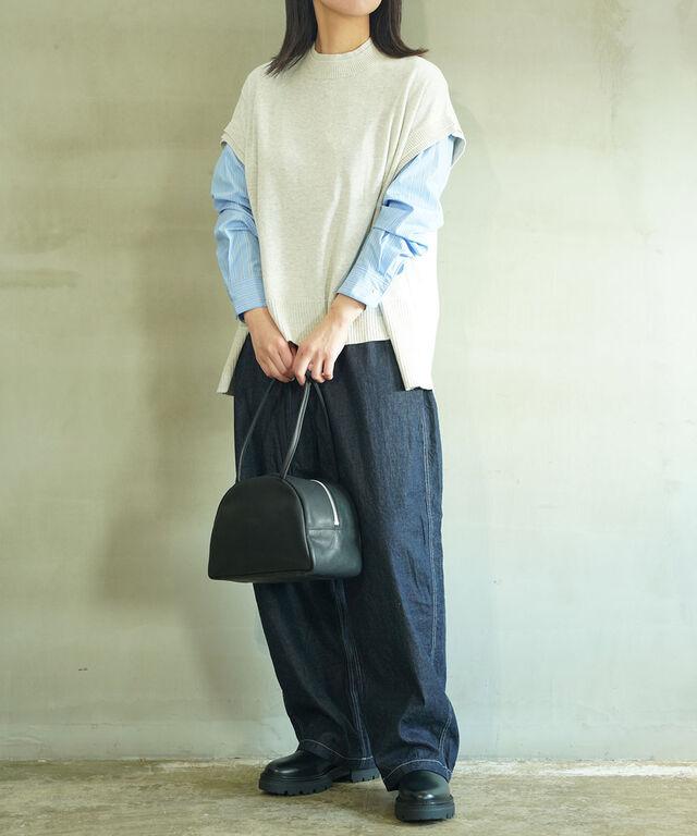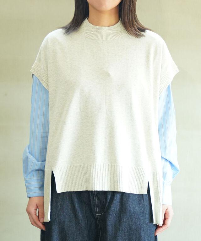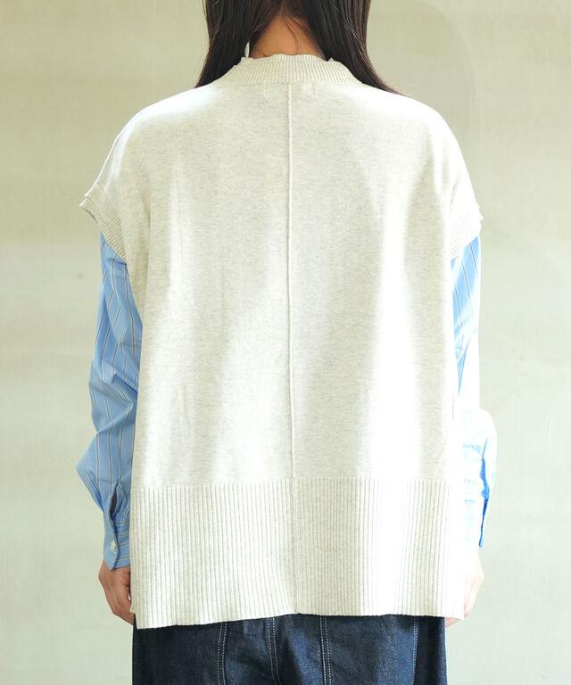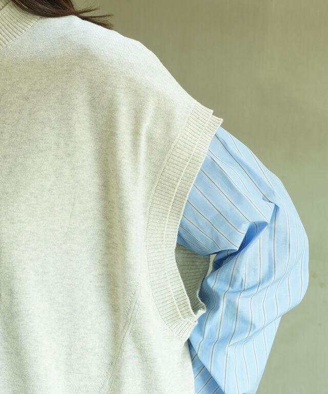 季節の変わり目のレイヤードスタイルにぴったりのニットベスト。