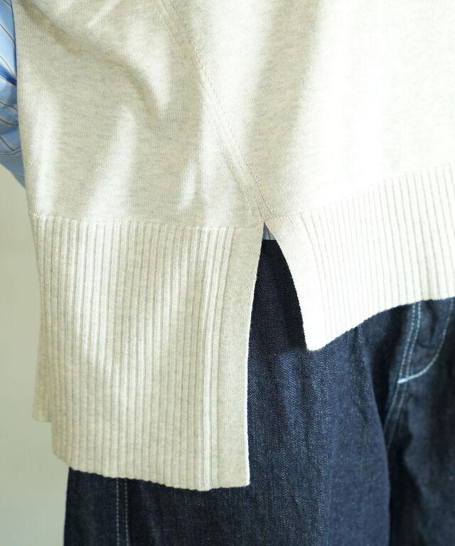 両サイドにスリット入りで、ワンピースやチュニックなどに重ねても軽やかな印象に。